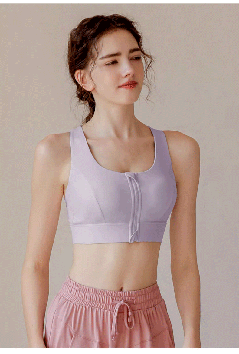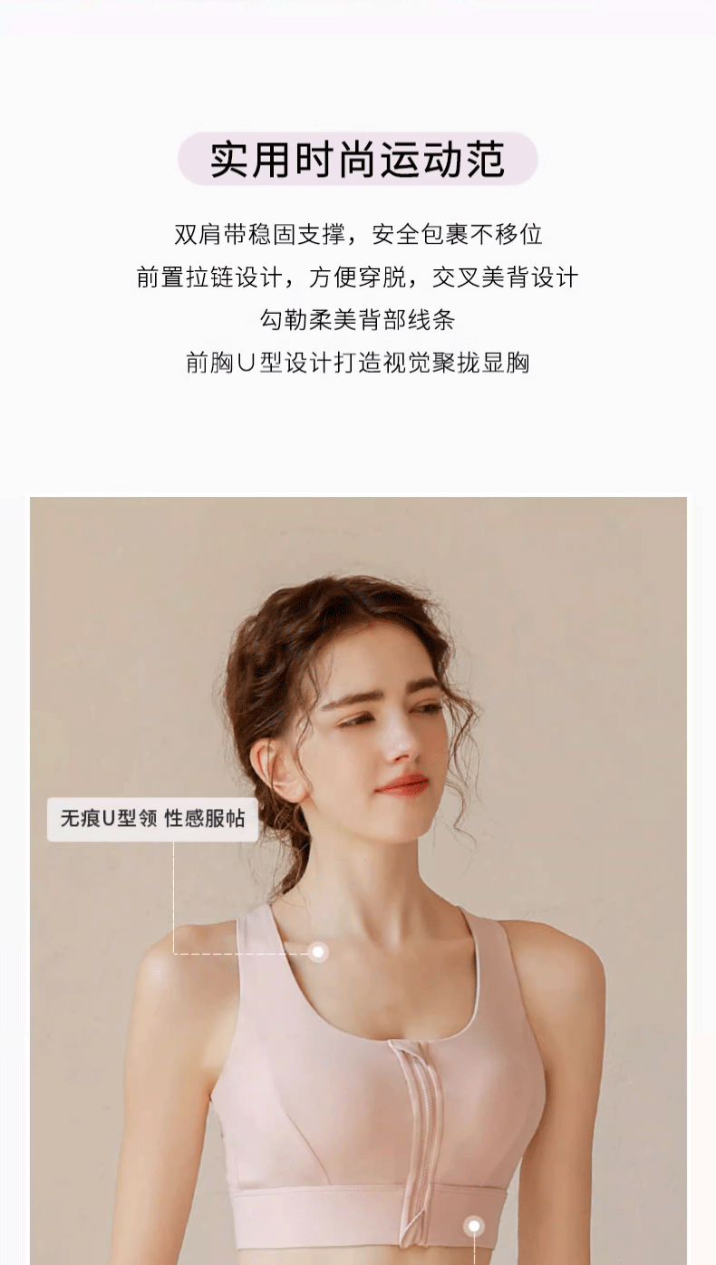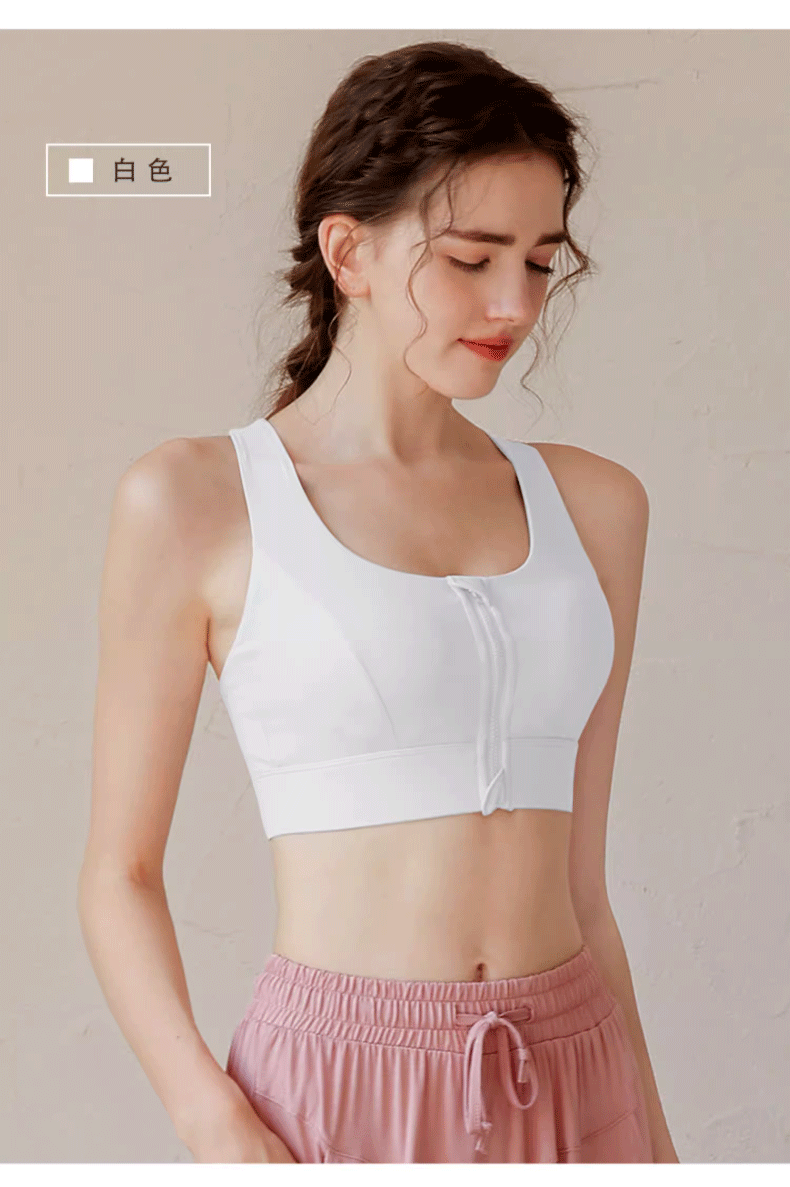 Yuebu Sports Bra Women's Front Zipper Anti-shock Anti-sagging High-Intensity Running Fitness Pilates Vest Yoga Bra White M - Recommended 100-115Jin Jin equals 0.5kg