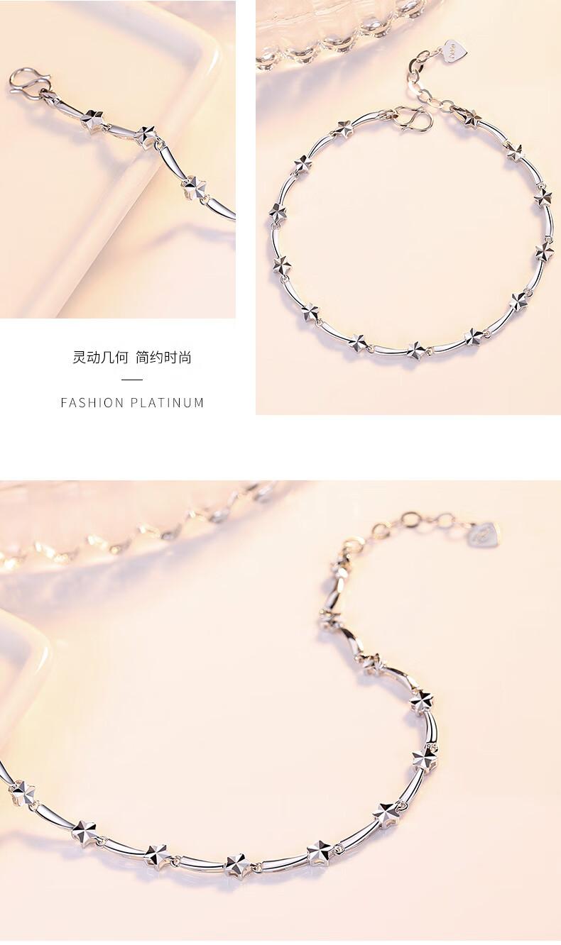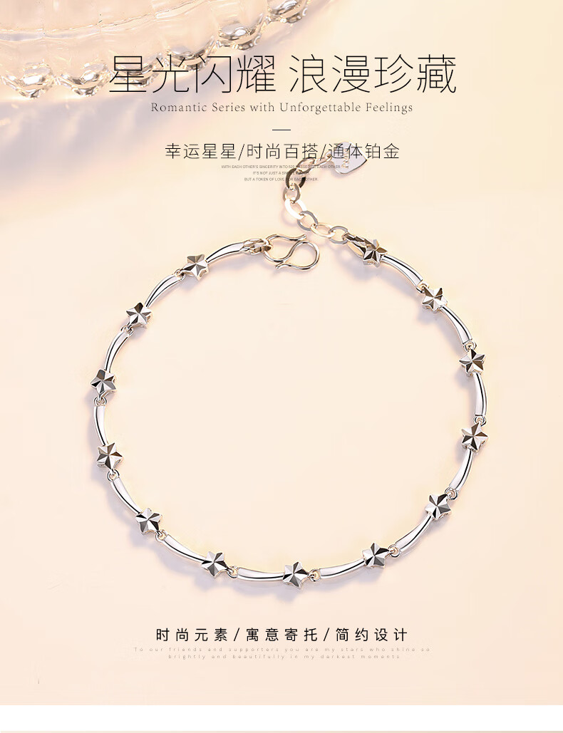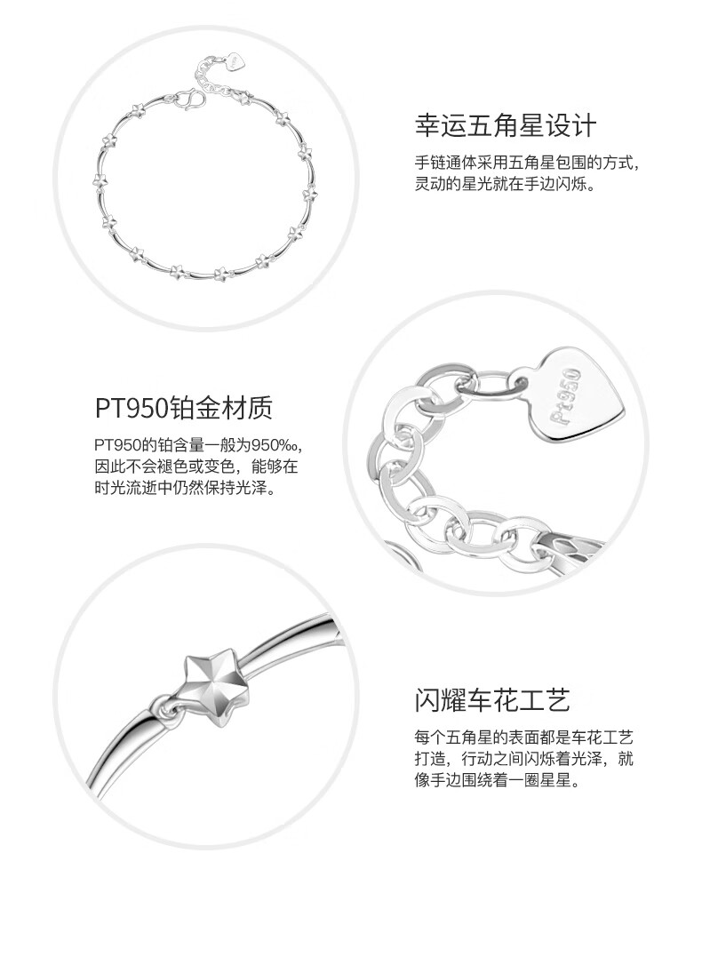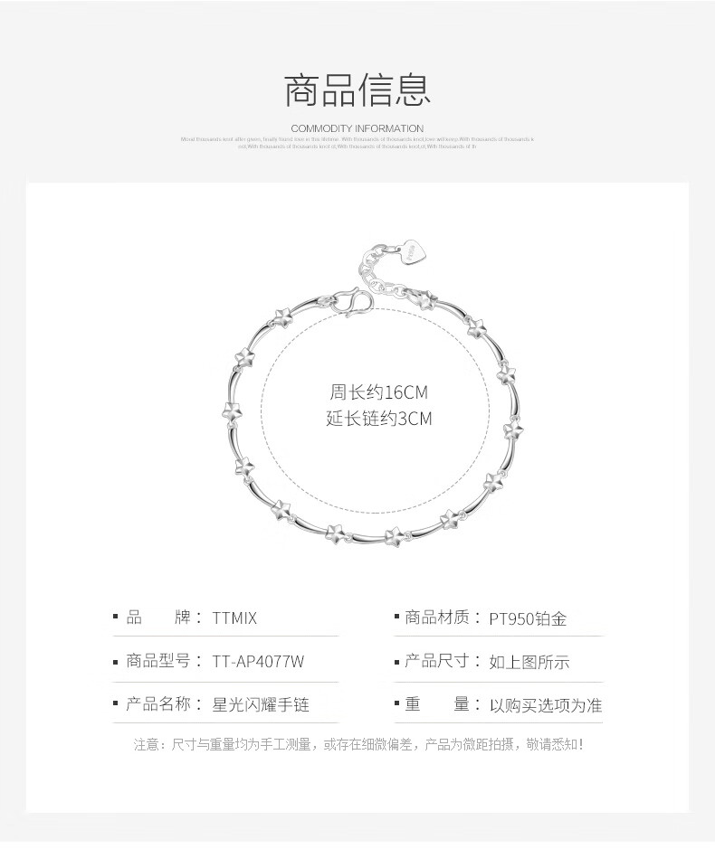 TTMIX platinum bracelet for women pt950 platinum lucky star pendant baby's breath jewelry 6.3-6.5g 16+2cm