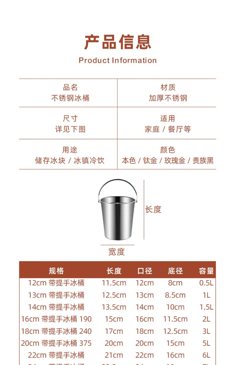 Yanxing Internet celebrity ice bucket household stainless steel ice bucket bar KTV champagne beer wine hotel supplies snack bucket commercial mini silver portable snack bucket 13cm (1.2L)