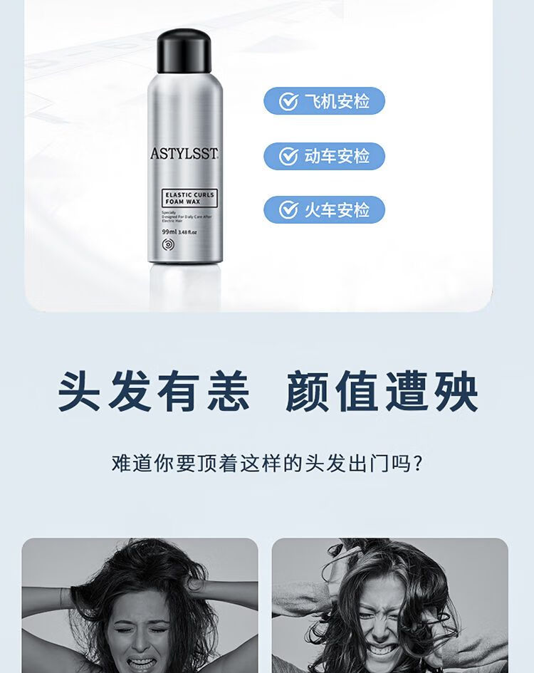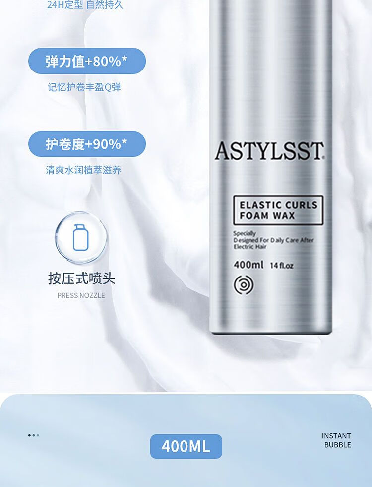 Stylist astylsst Foam Hair Wax Elastic Women's Curly Hair Fluffy Wool Curls Men's Bubble Mousse Foam Hair Wax 400ML*2 Bottles (Two Bottles Promotion)