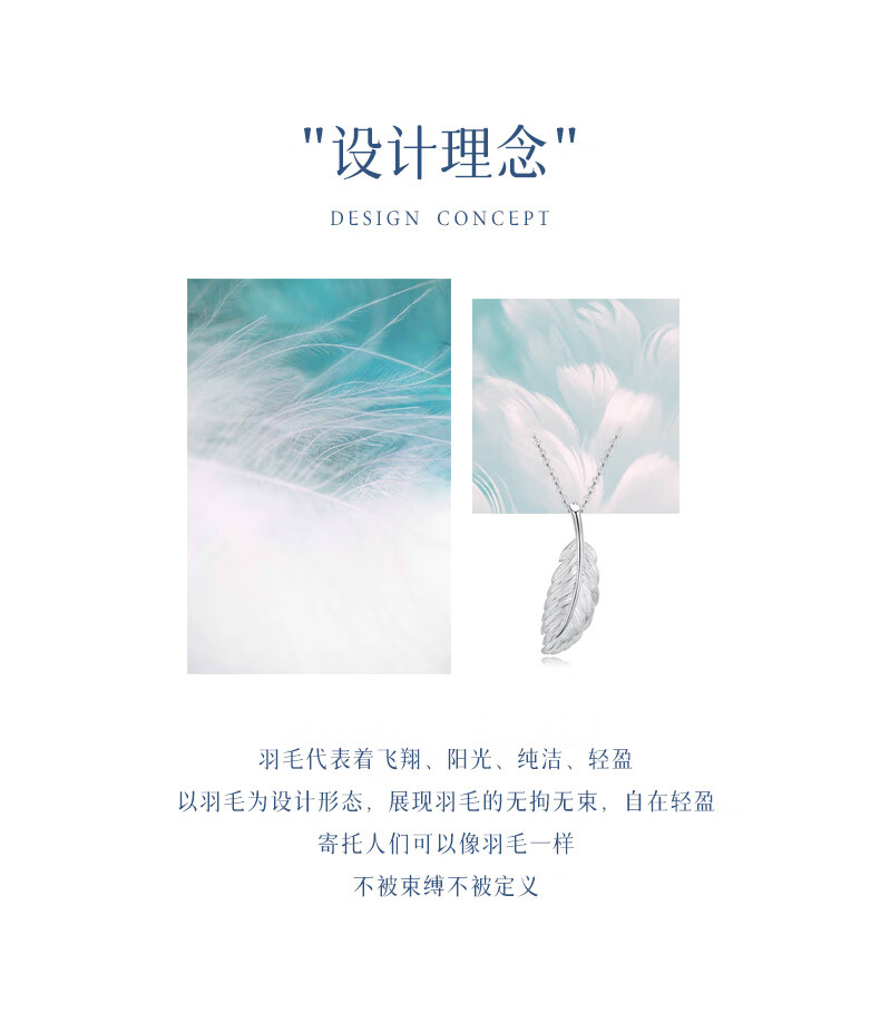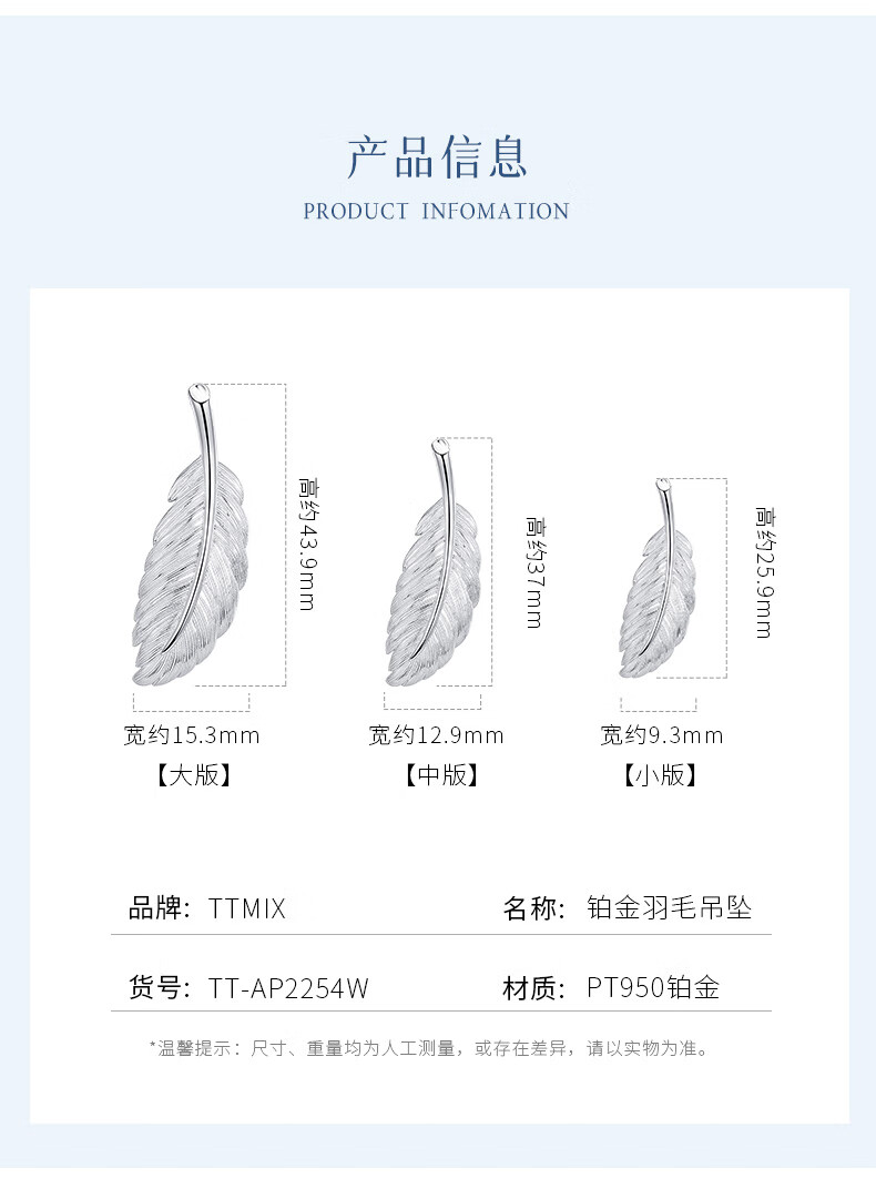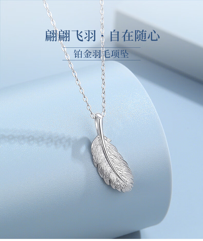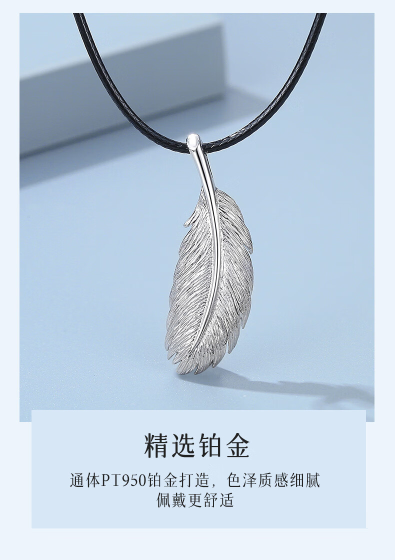 TTMIX feather pendant pt950 platinum clavicle chain men's and women's pendant couple's platinum pendant small version 2.9-3.1g+ with silver chain