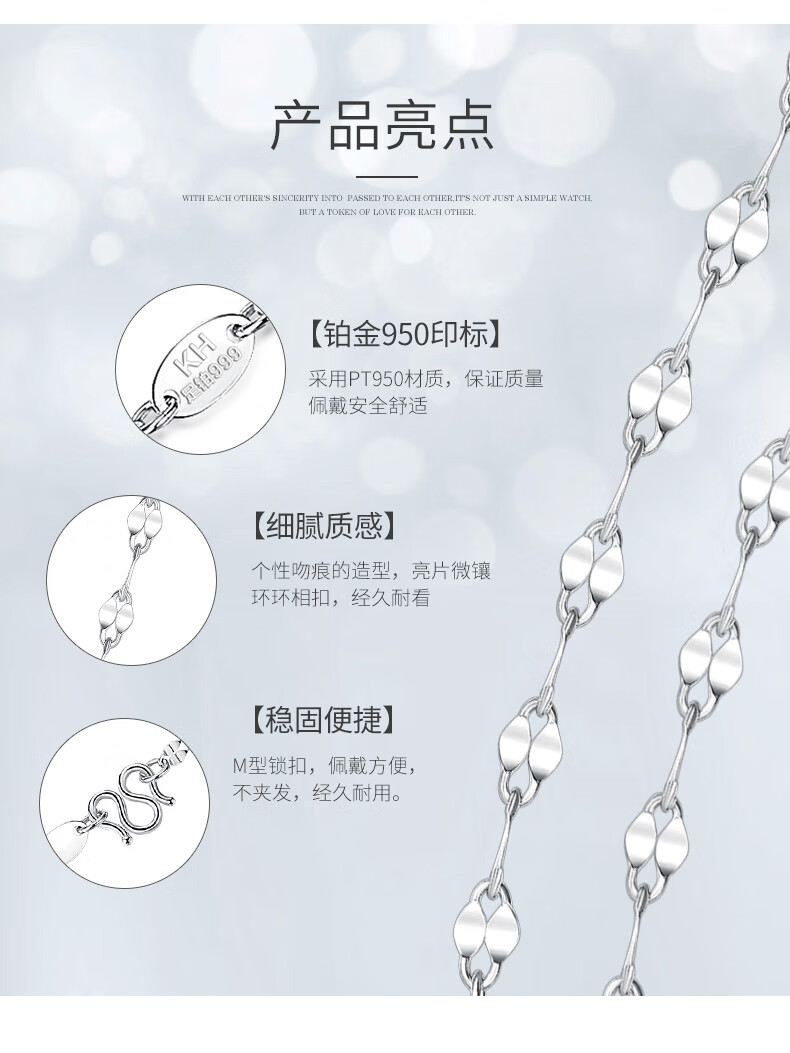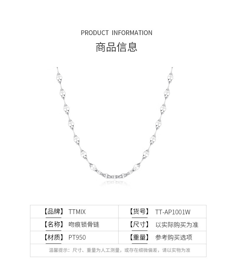 TTMIX platinum necklace for women pt950 platinum kiss clavicle chain versatile plain chain light luxury niche 2.9-3.1g 48cm
