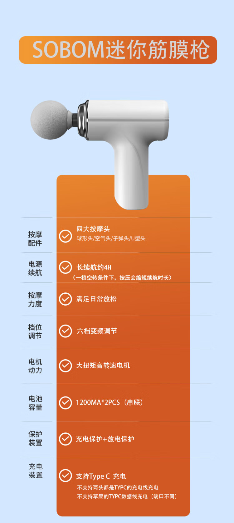 SOBOM fascia gun massager professional-grade mini mini portable home muscle relaxation Spring Festival annual meeting New Year's birthday gift for boys and girls husbands and elders team building white 6-speed 4 massage head color box