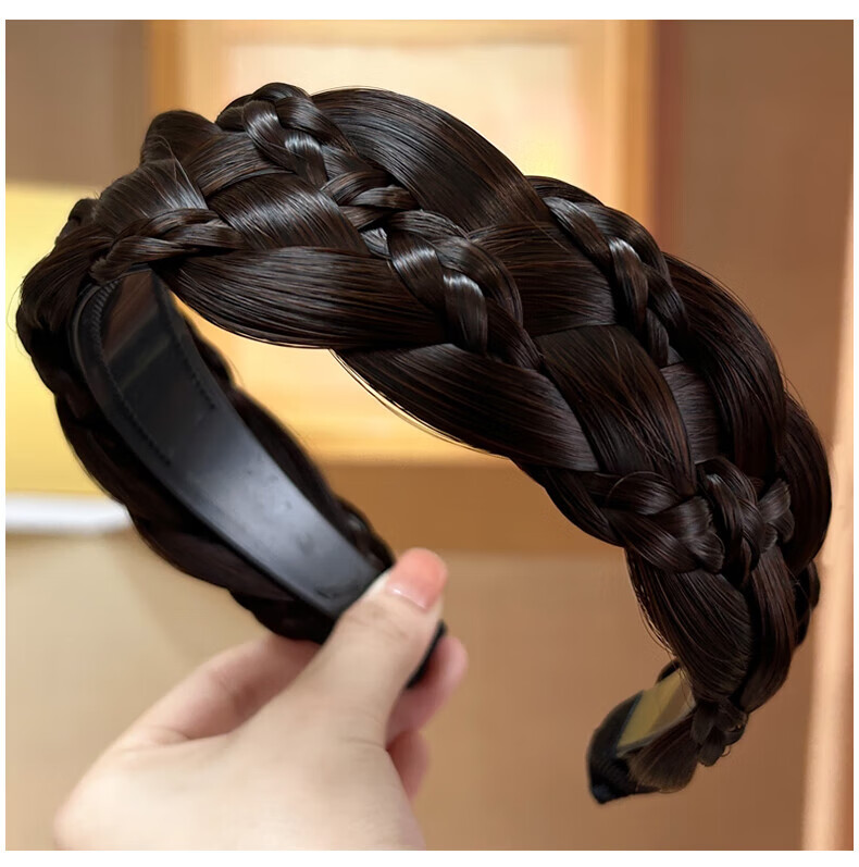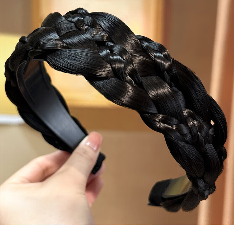 Aitanfang White Hair Covering Headwear Daily Wear 2025 New Autumn and Winter Broad Brim Wig Twist Headband Women's Headband Pressed Hair Clip Hair Natural Black
