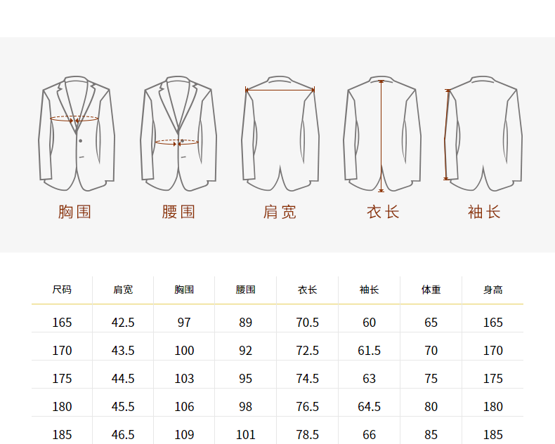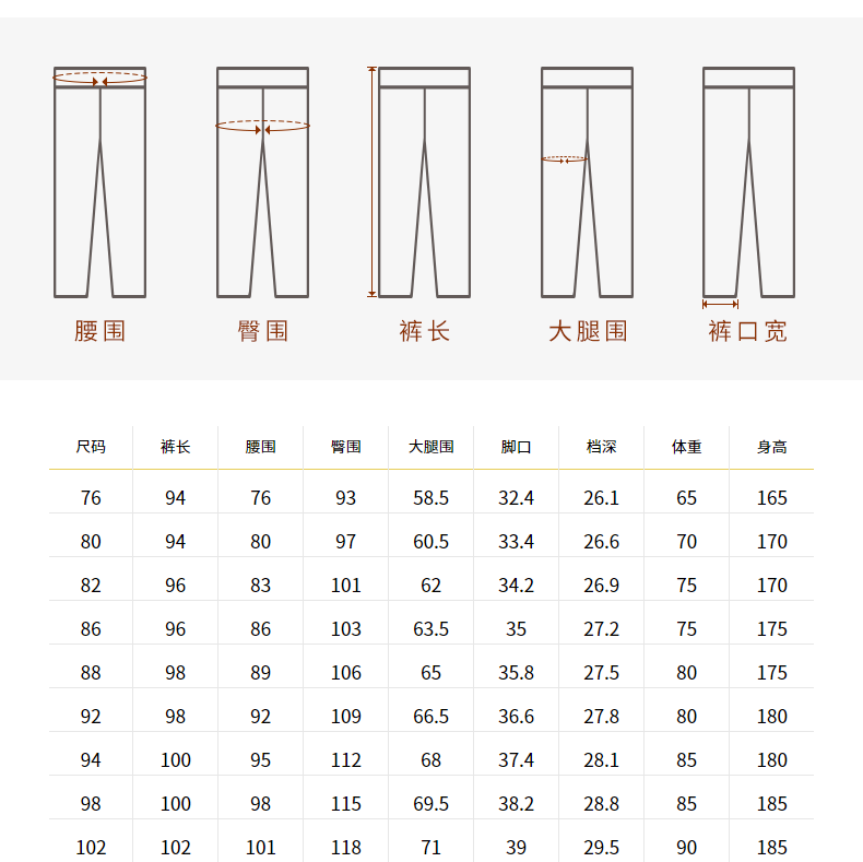 China (cm) 160-165/84-86 165-170 / 88-90 167-172 / 92-96 168-173 / 98-102 170-176 / 106-110
