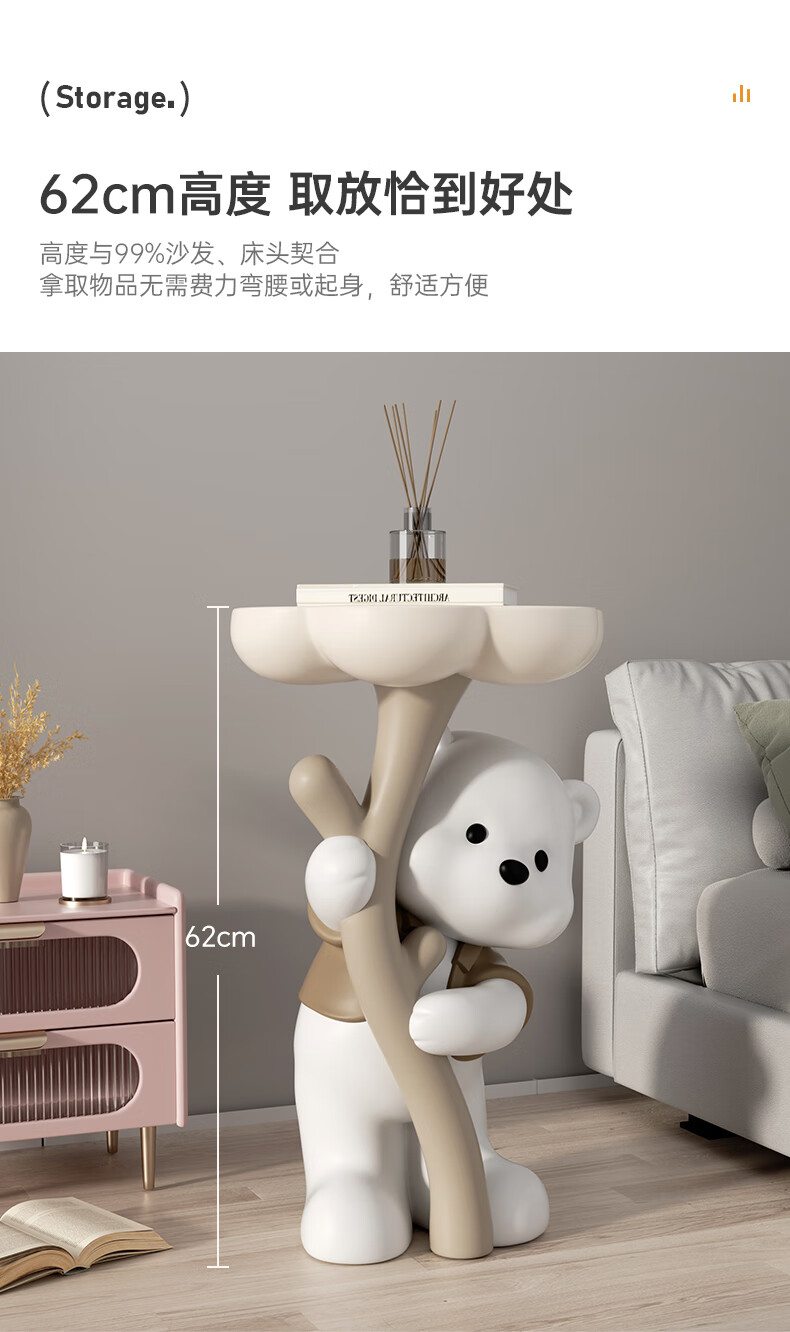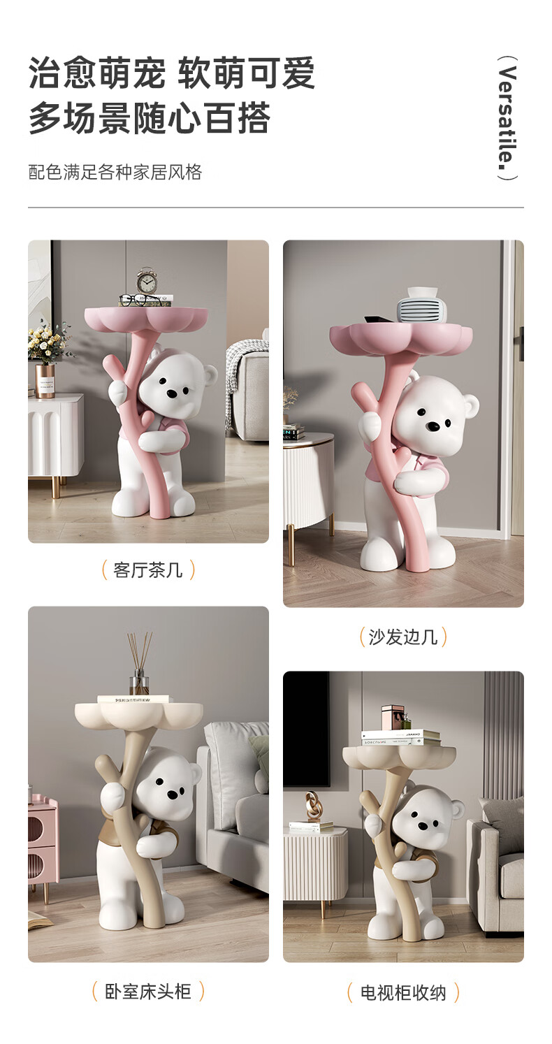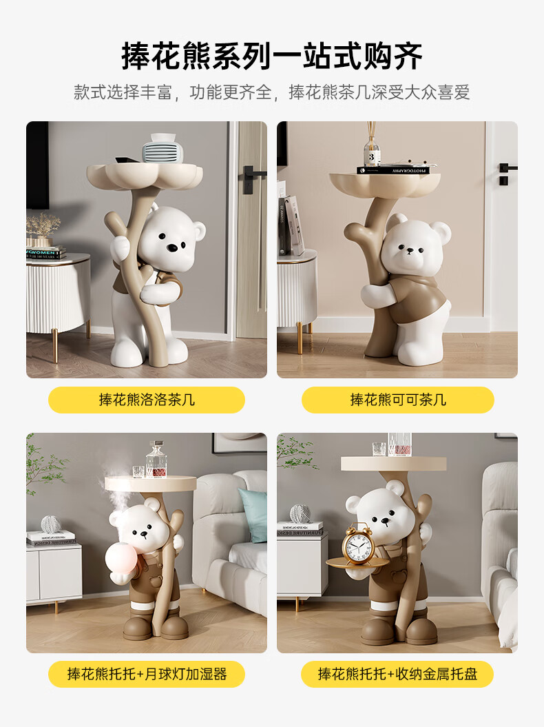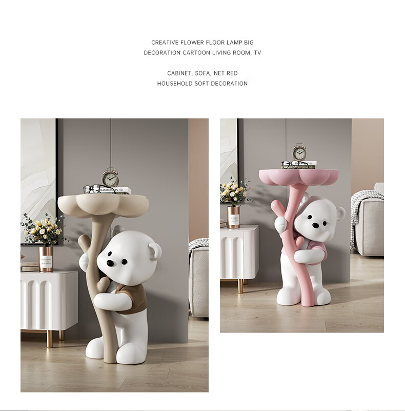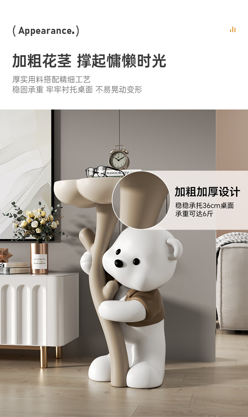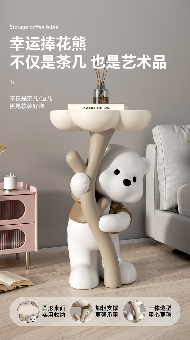 Chenyu Creative Violent Bear Floor-standing Decoration Living Room TV Cabinet Sofa Next Coffee Table Home Decoration Housewarming Gift Bouquet Bear Luoluo Coffee Table-Brown