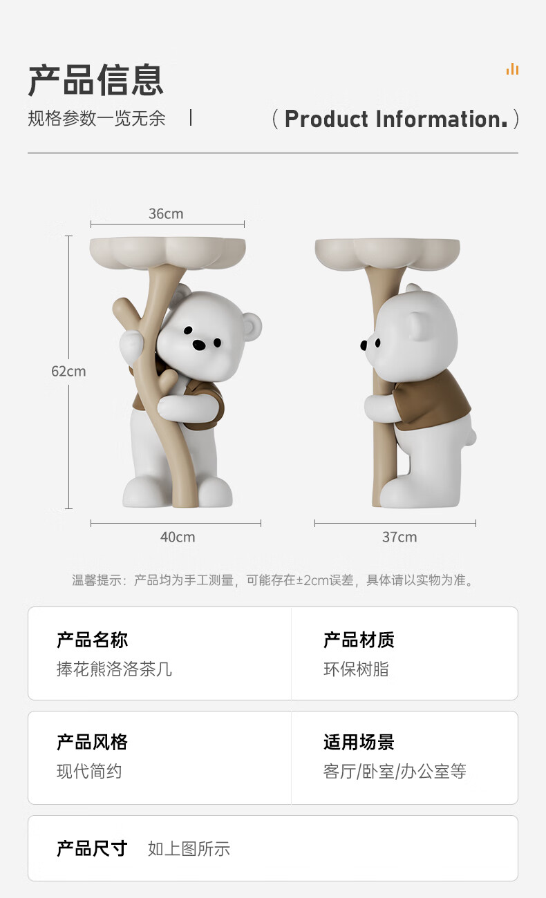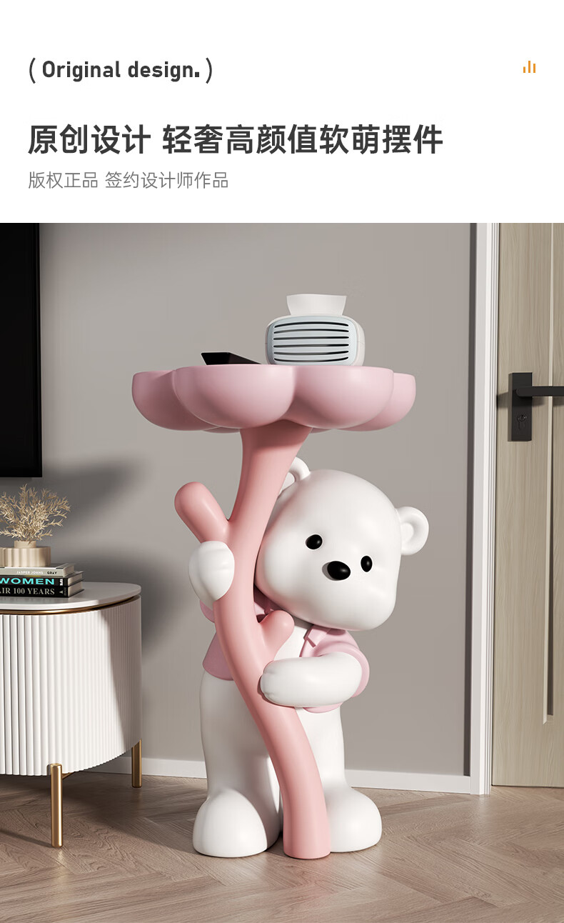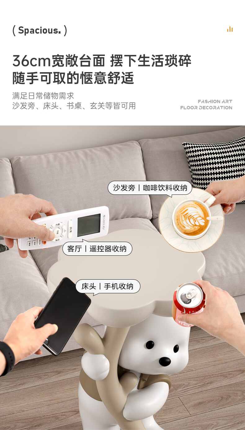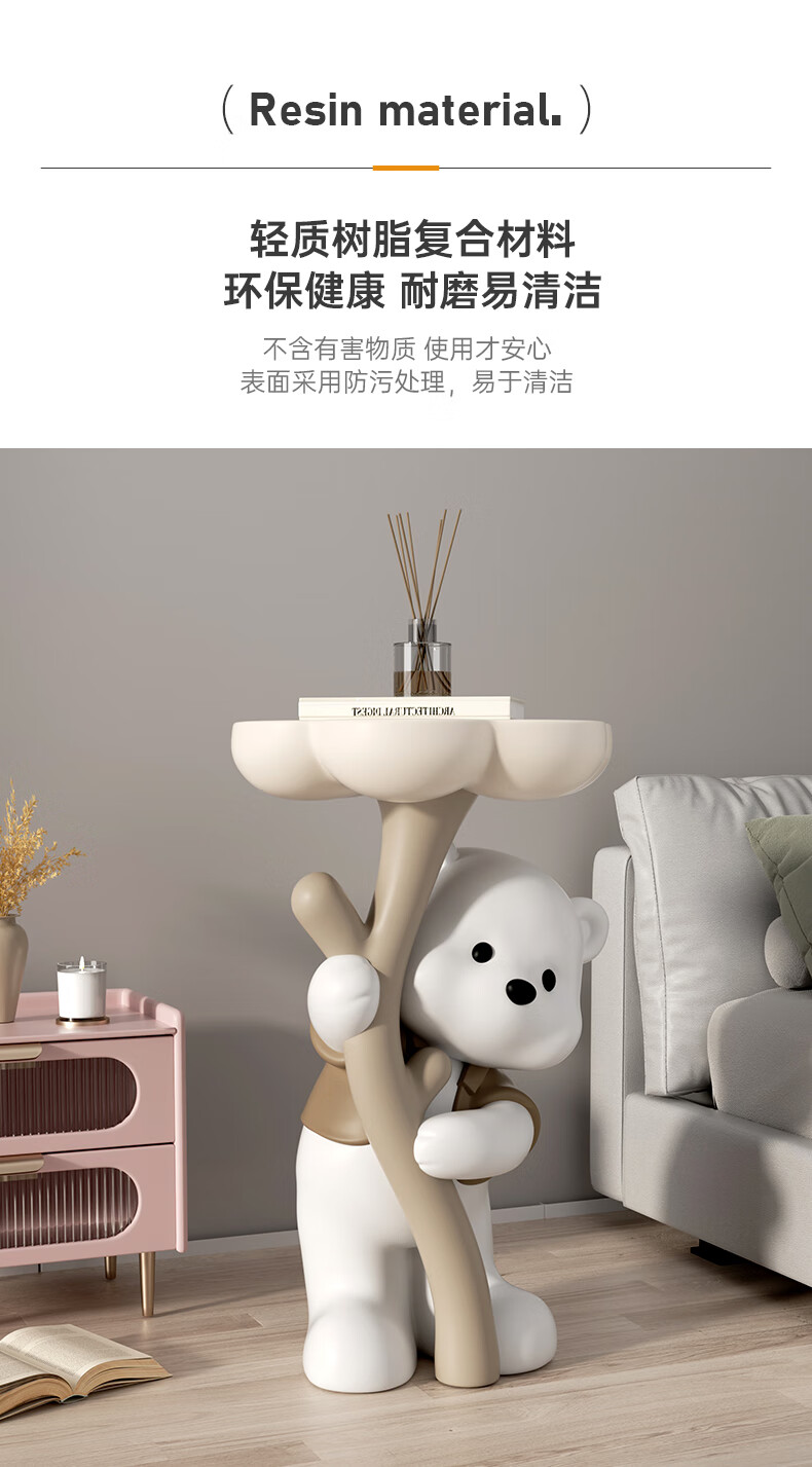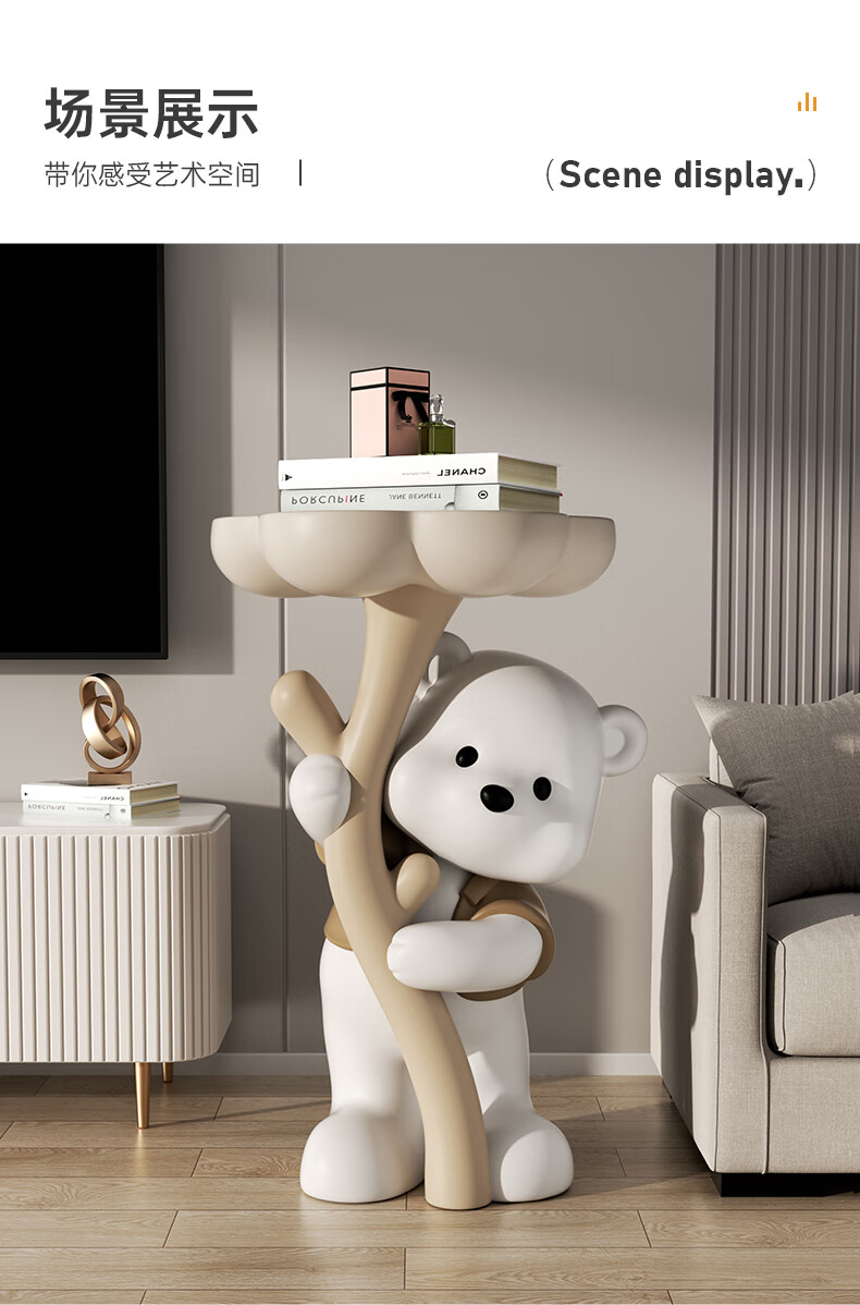 Chenyu Creative Violent Bear Floor-standing Decoration Living Room TV Cabinet Sofa Next Coffee Table Home Decoration Housewarming Gift Bouquet Bear Luoluo Coffee Table-Brown