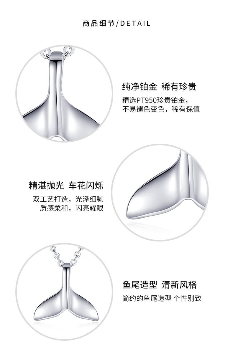 TTMIX platinum PT950 fish tail pendant mermaid platinum light luxury luxury pendant for women small size 0.9-1.1g