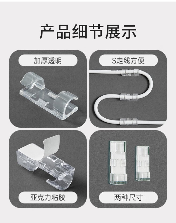 Weizhi Control Cable Manager, punch-free, traceless wire holder, desktop storage and organization cable clip, network cable buckle, transparent/small size 3-5mm self-adhesive artifact/glued 20 pcs