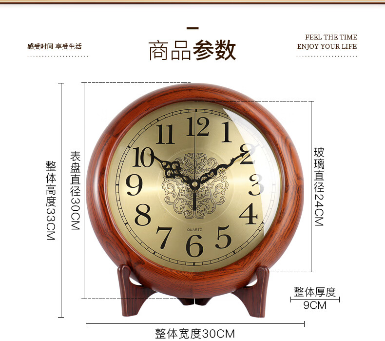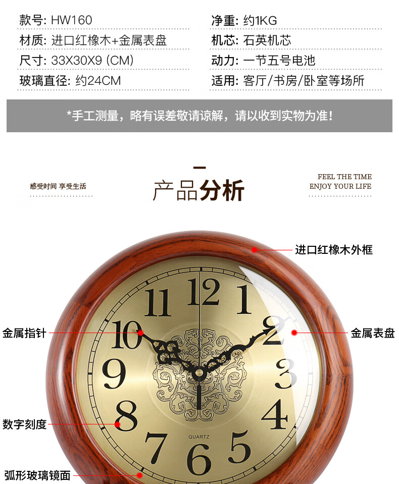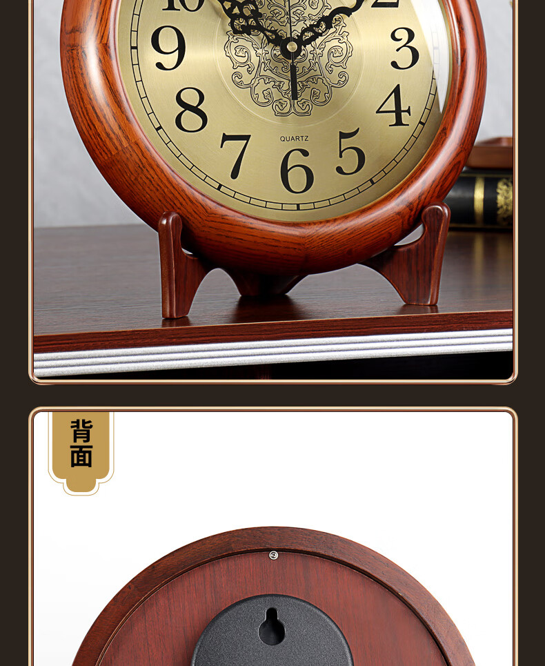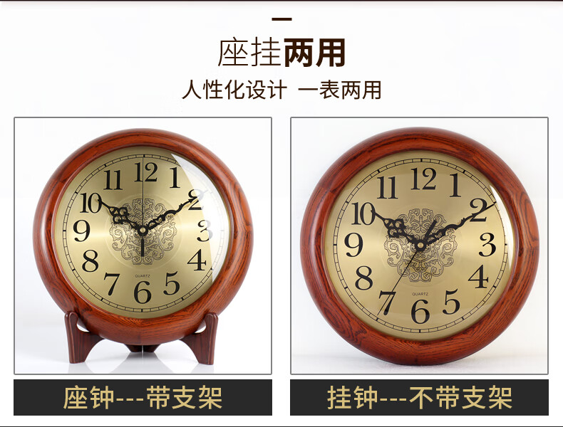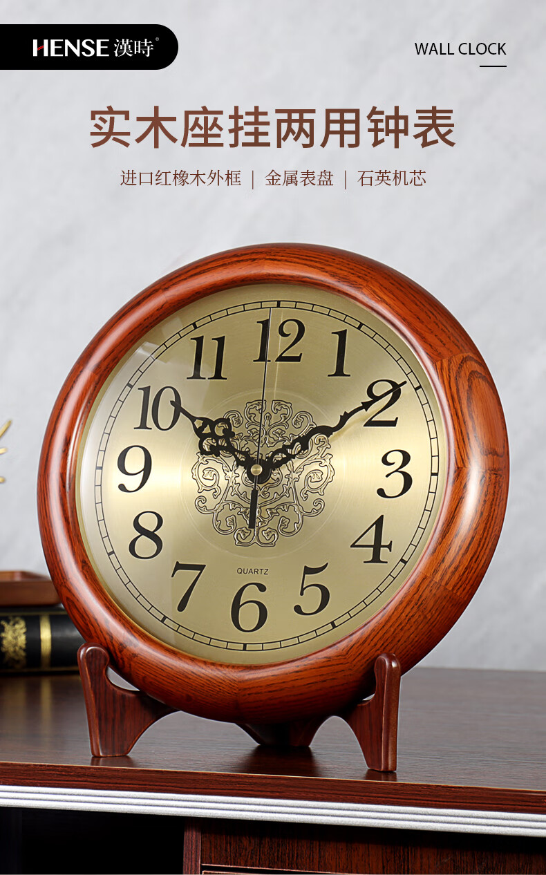 Hense solid wood clock base hanging dual-purpose clock living room desktop table clock home clock quartz clock HW160 clock + bracket (can be placed or hung on the wall)