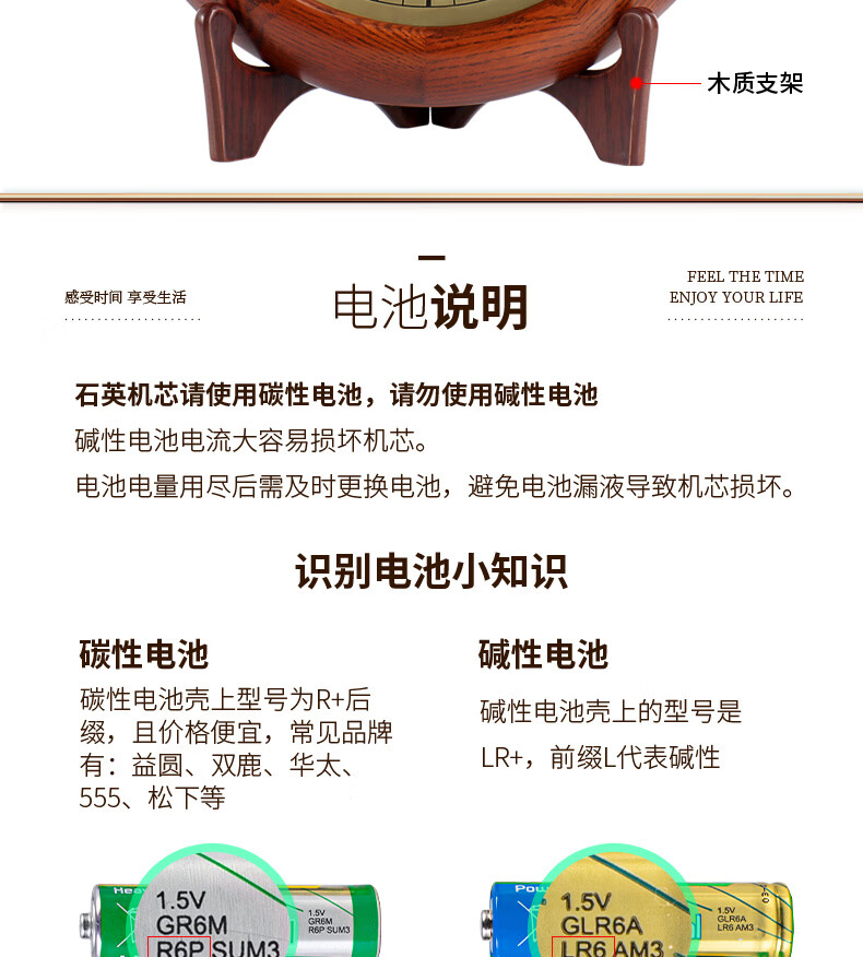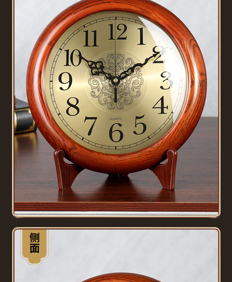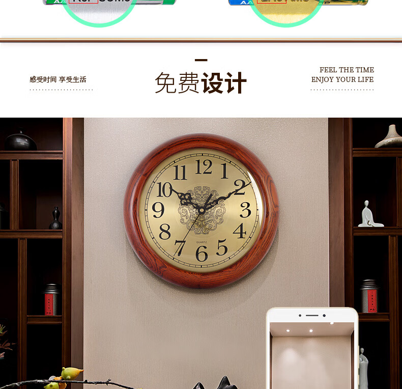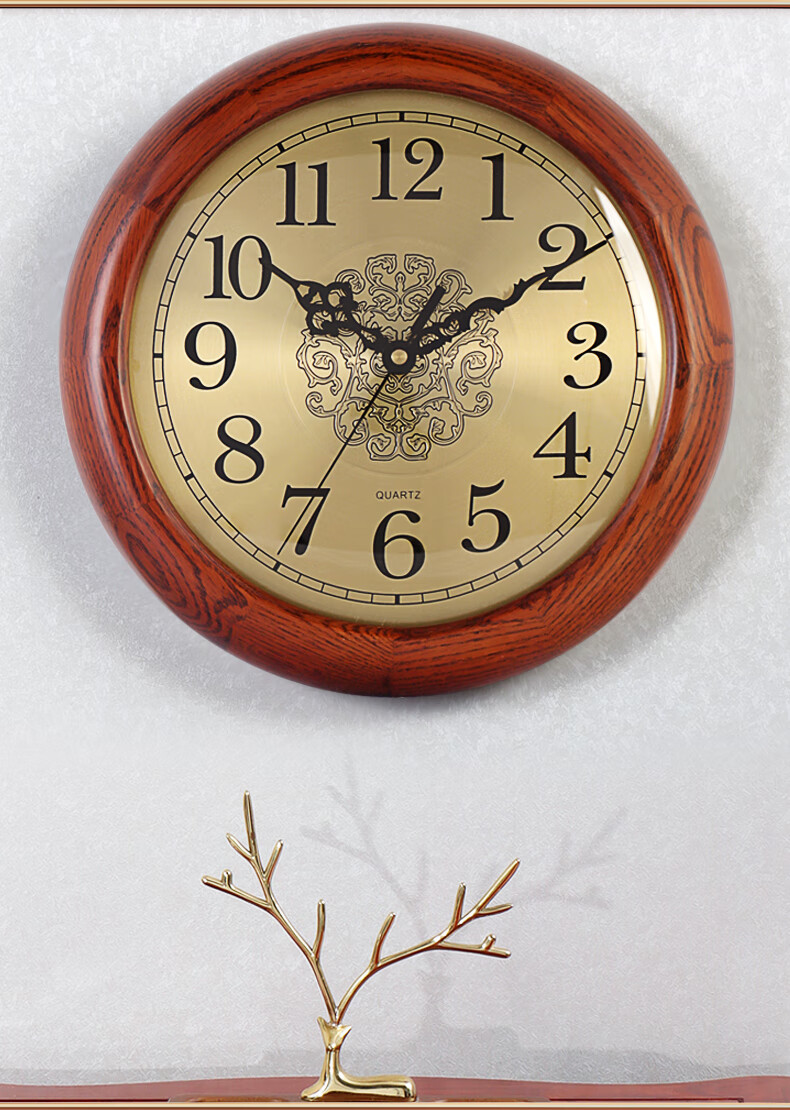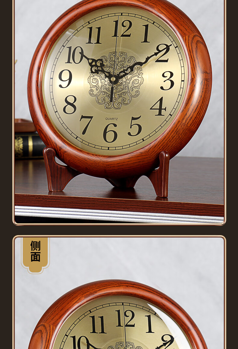 Hense solid wood clock base hanging dual-purpose clock living room desktop table clock home clock quartz clock HW160 clock + bracket (can be placed or hung on the wall)