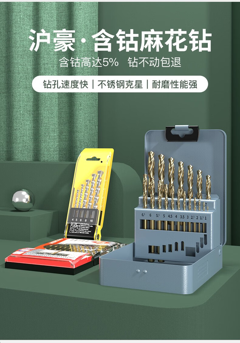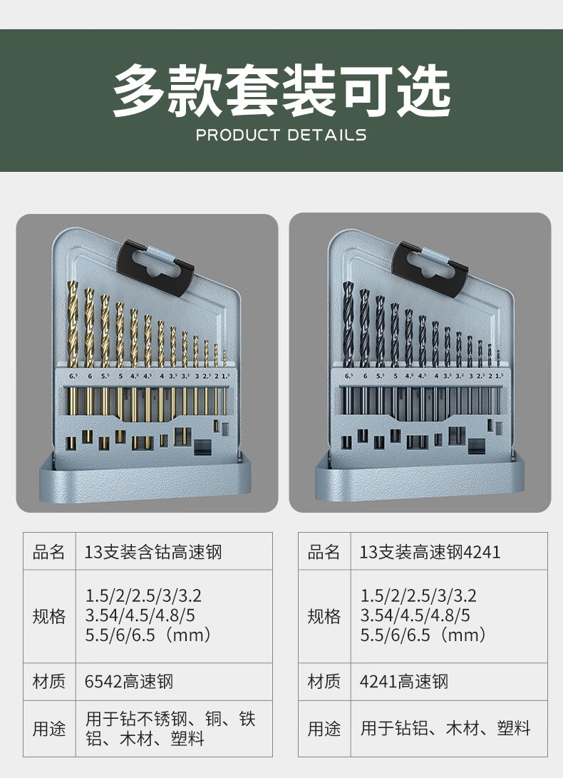 HUHAO M35 Cobalt-containing Twist Drill Bit Set Super Hard Drilling Iron Drilling Alloy Stainless Steel Special Hand Electric Drill Bits Professional Style 13 Pieces - Plastic Box