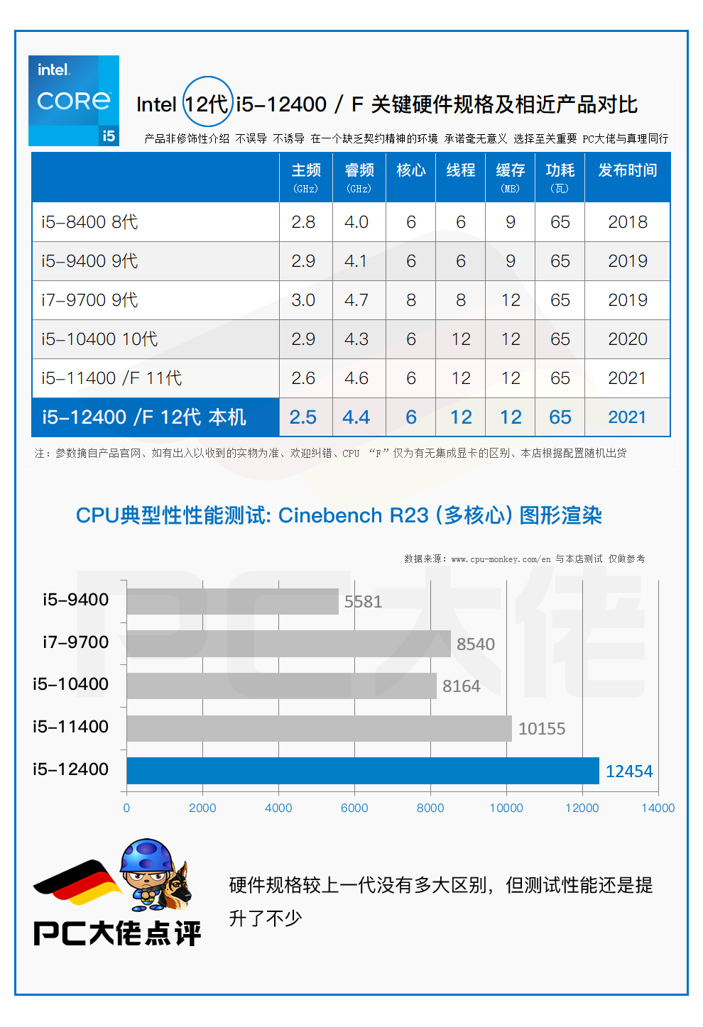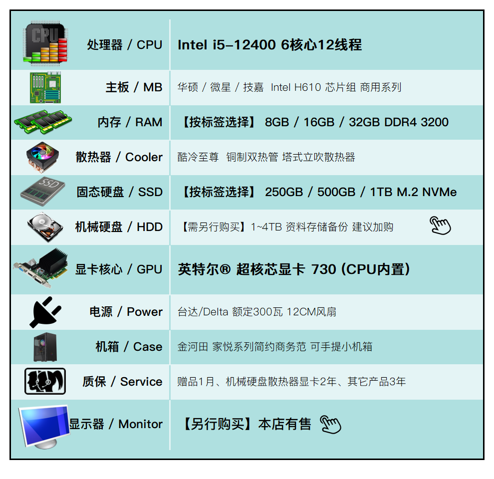 PC Gangster (PCDL) Core i5-12400 six-core commercial home office online course customer service operation desktop computer host 16GB memory 500GB SSD solid state drive