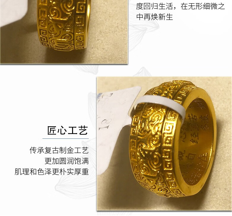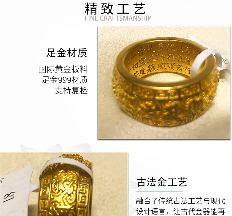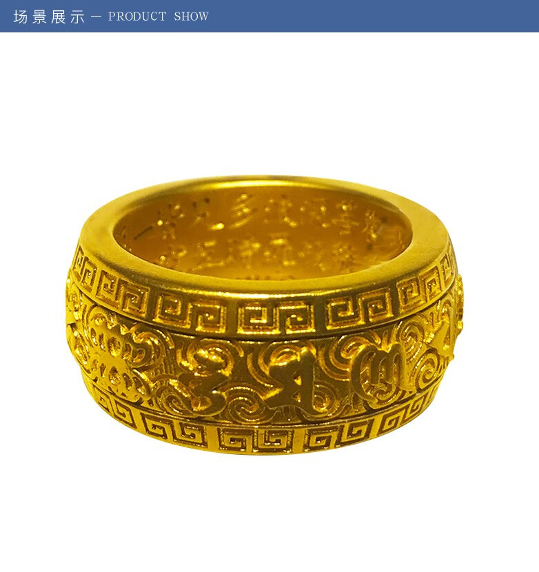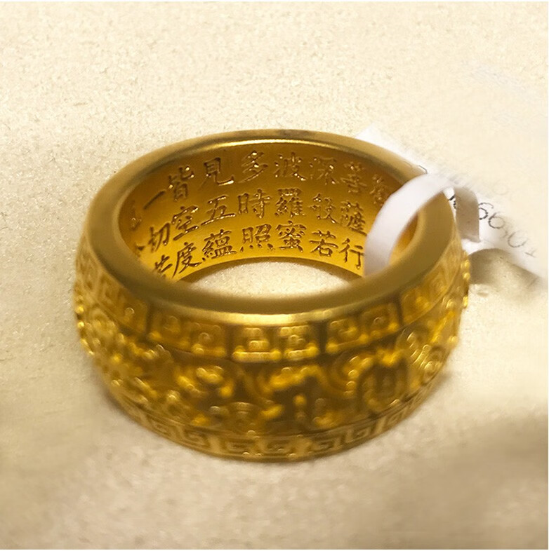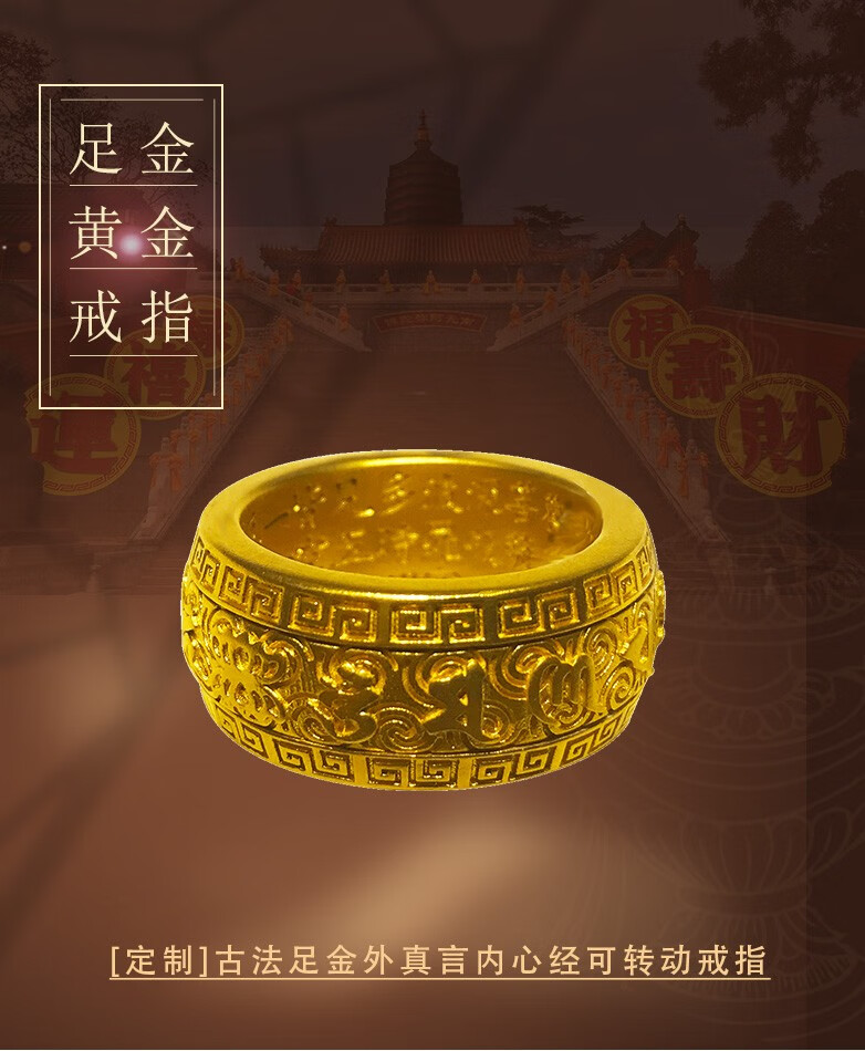 Hanqi Jewelry Ancient Method Pure Gold 999 Solid Mantra on the Outside and Heart on the Inside Men's Rotatable Fixed Mouth Ring for Father Customized About 27 Grams Ring Size Contact Customer Service