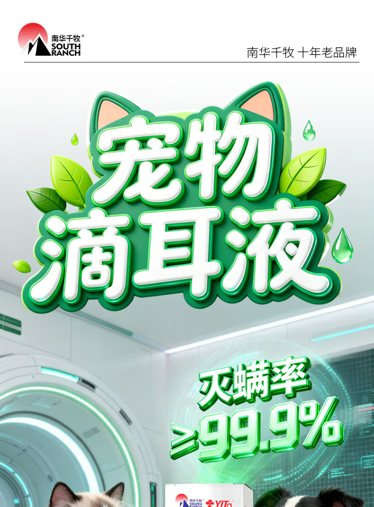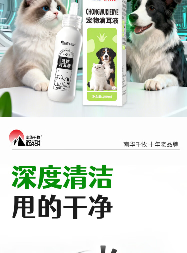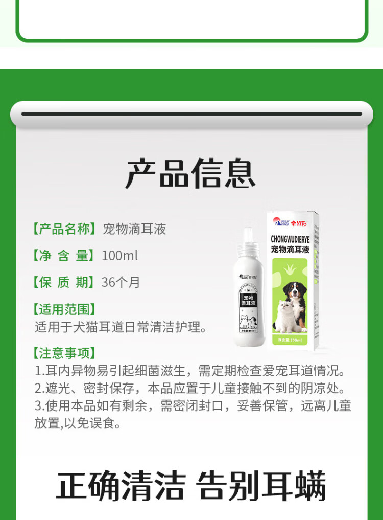 Cat ear drops, dog ear mite removal medicine, otitis medicine, ear anti-inflammation, itching, pus and smelly pet ear cleaning liquid, pet ear drops/100ml bottle/box