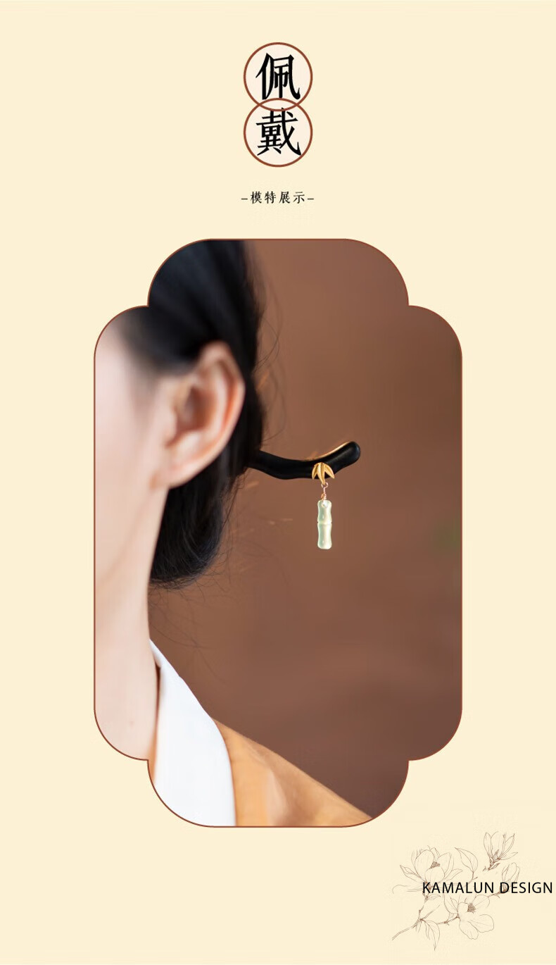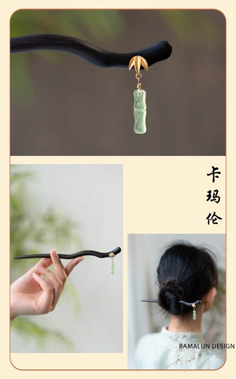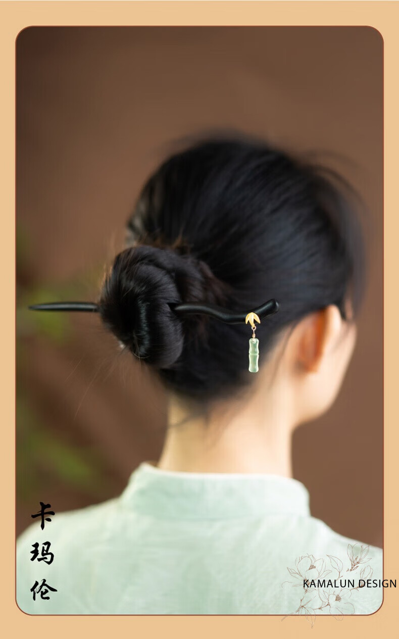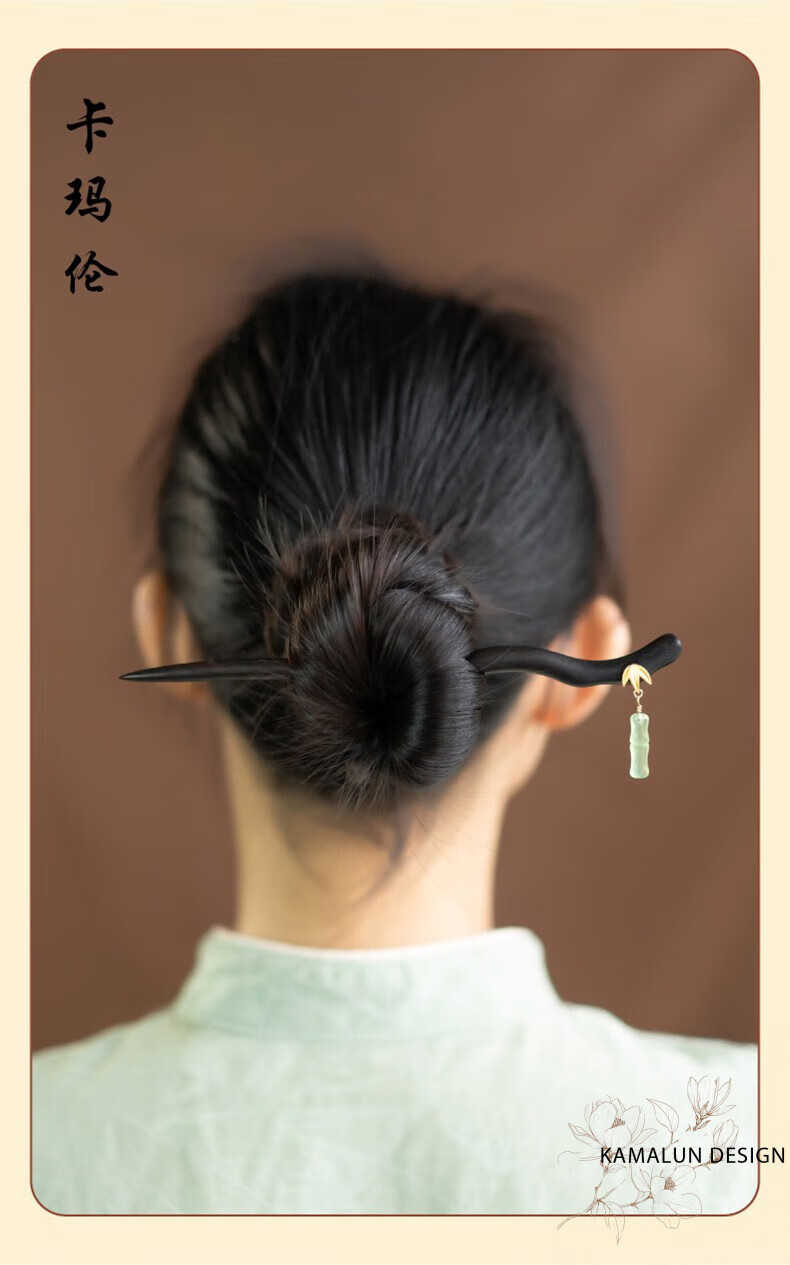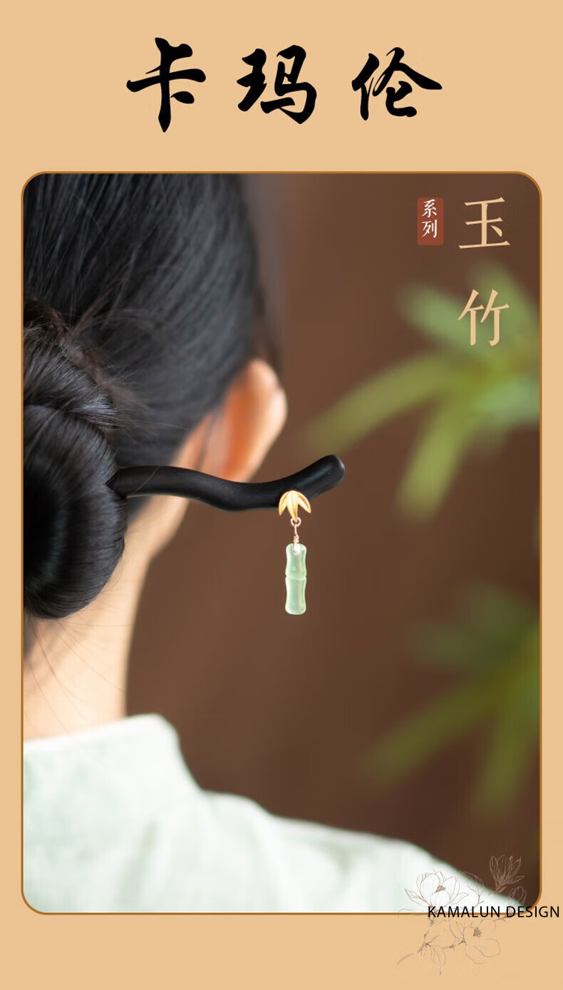 Kamalun (KAMALUN) Bamboo hairpin, antique sandalwood hairpin, retro rocking hairpin, daily hairpin, new Chinese Hanfu headwear for girlfriend, Yuzhu hairpin + brand gift box, no engraving