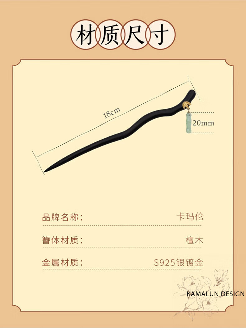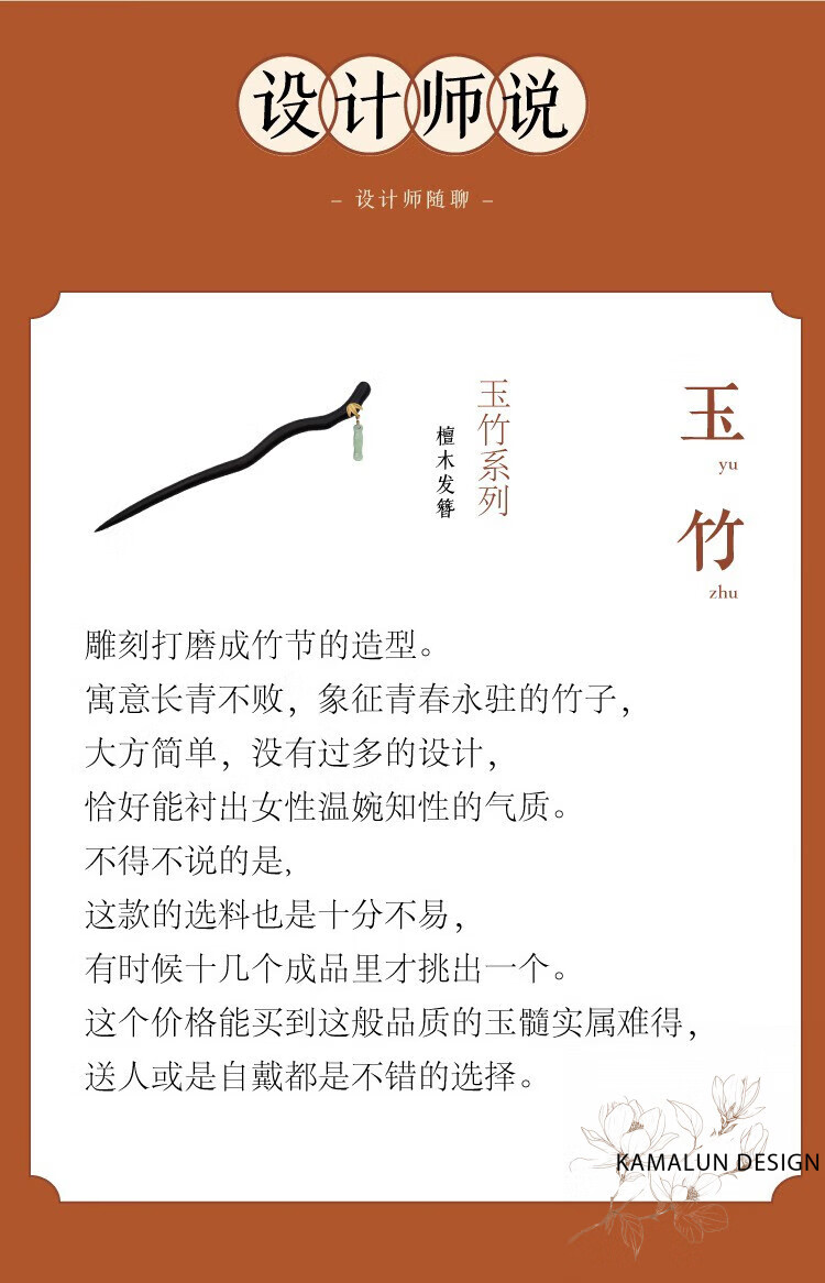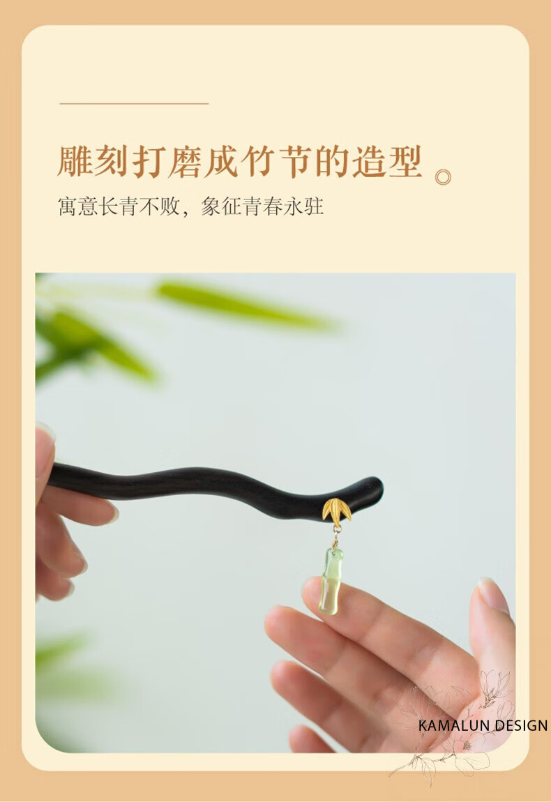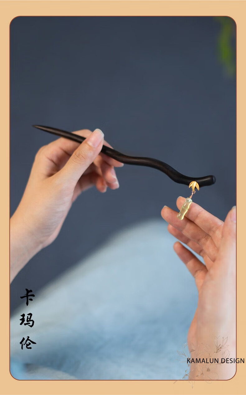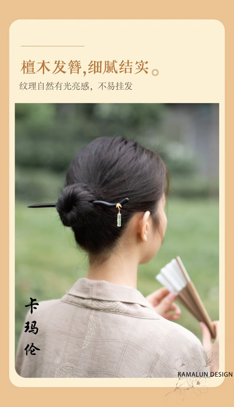 Kamalun (KAMALUN) Bamboo hairpin, antique sandalwood hairpin, retro rocking hairpin, daily hairpin, new Chinese Hanfu headwear for girlfriend, Yuzhu hairpin + brand gift box, no engraving