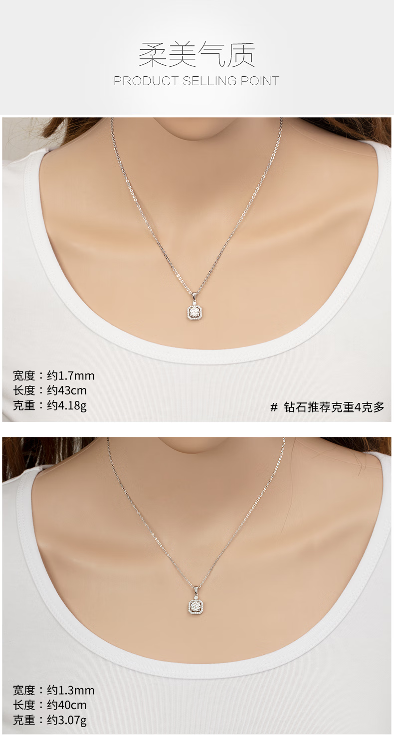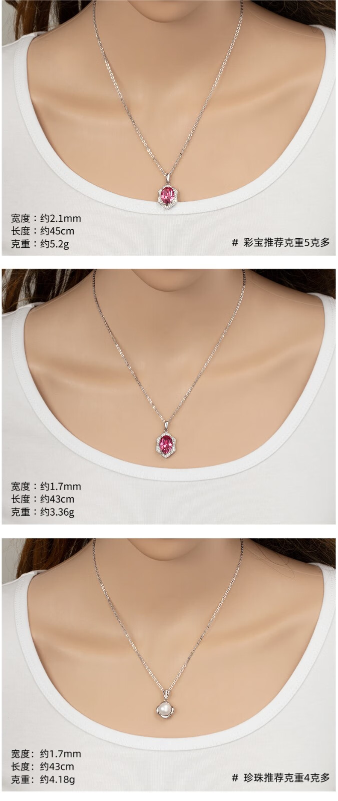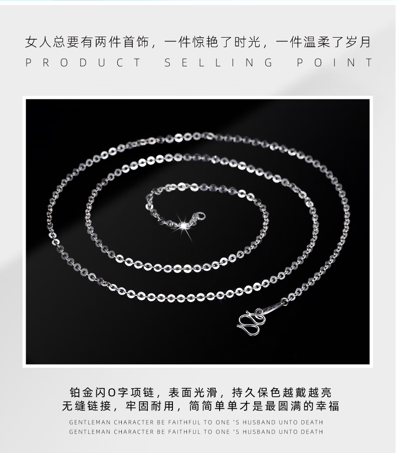 Centennial Baojinxiang Pt950 platinum necklace for women, fashionable flashing O-shaped chain, versatile platinum pendant, platinum necklace, female clavicle chain, about 43cm 3.37-3.52g, about 1.5mm thick