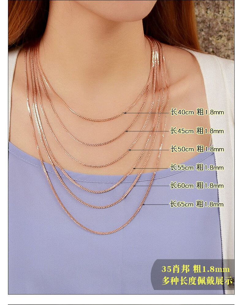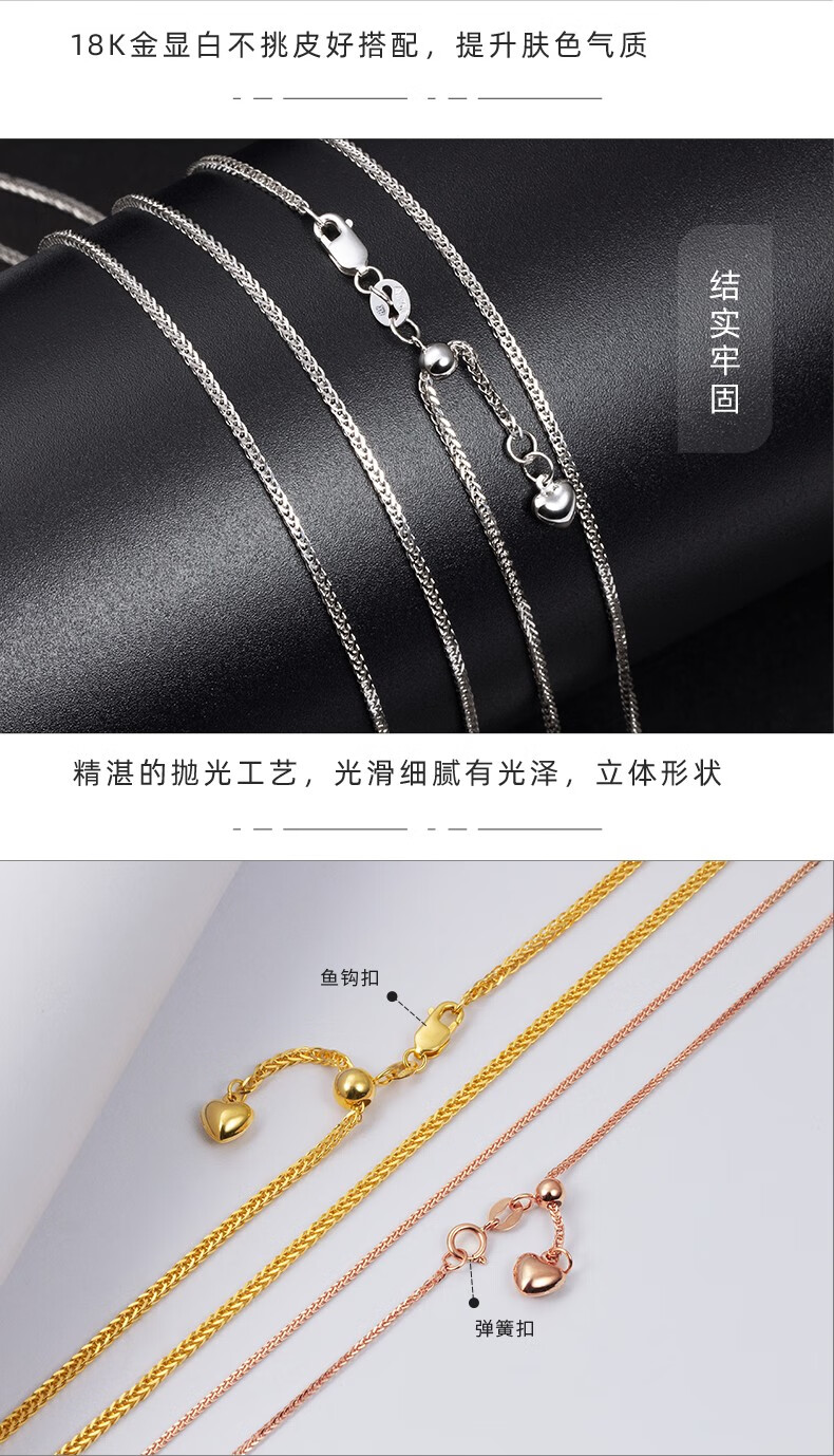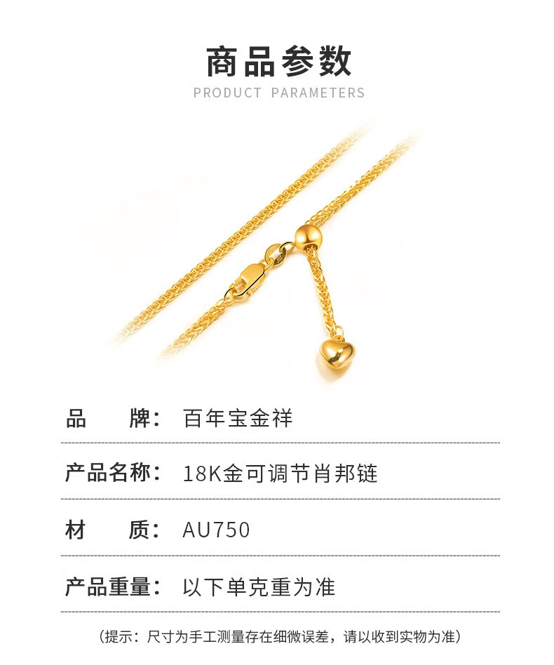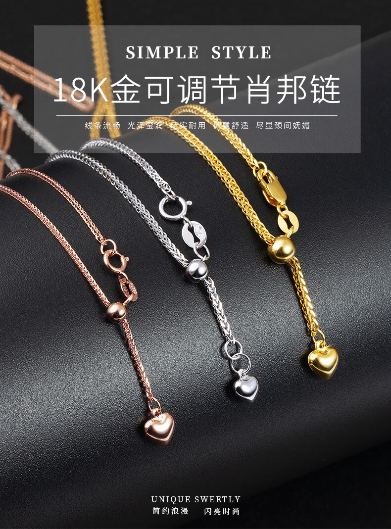 Centenary Baojinxiang 18k gold necklace for women, Chopin chain, adjustable gold rose gold clavicle chain, au750 sweater chain, 18k gold Chopard adjustable, about 50CM long, about 2.7-2.9 grams, about 1.3mm thick