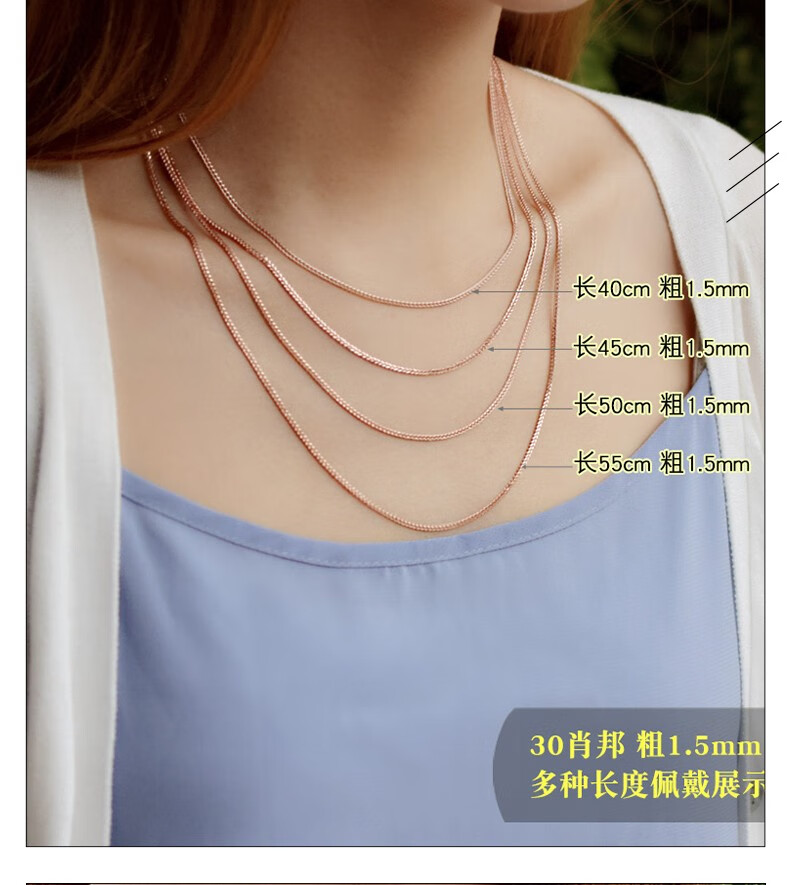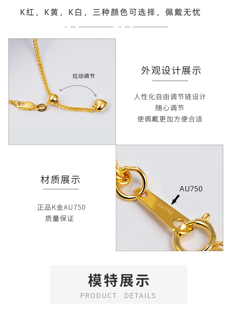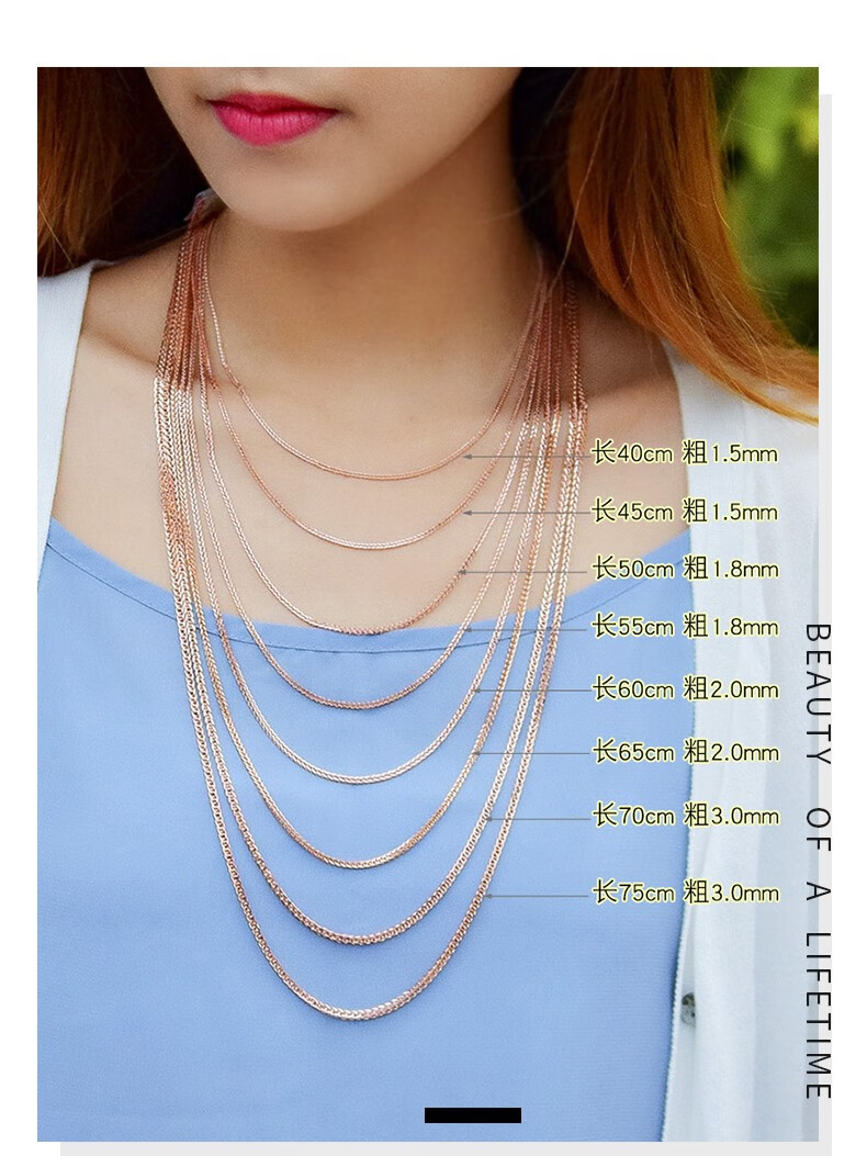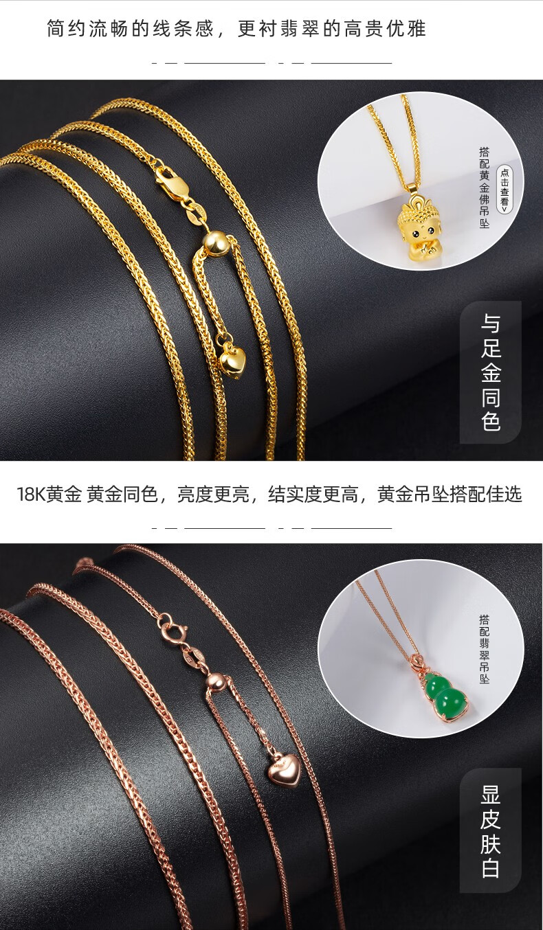 Centenary Baojinxiang 18k gold necklace for women, Chopin chain, adjustable gold rose gold clavicle chain, au750 sweater chain, 18k gold Chopard adjustable, about 50CM long, about 2.7-2.9 grams, about 1.3mm thick