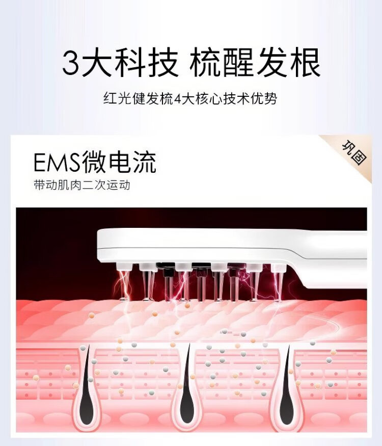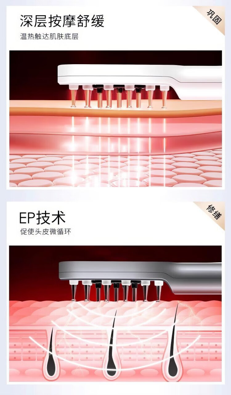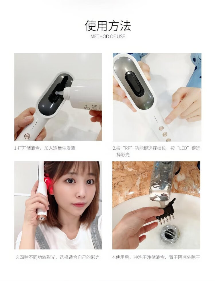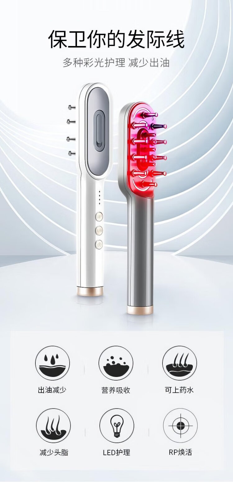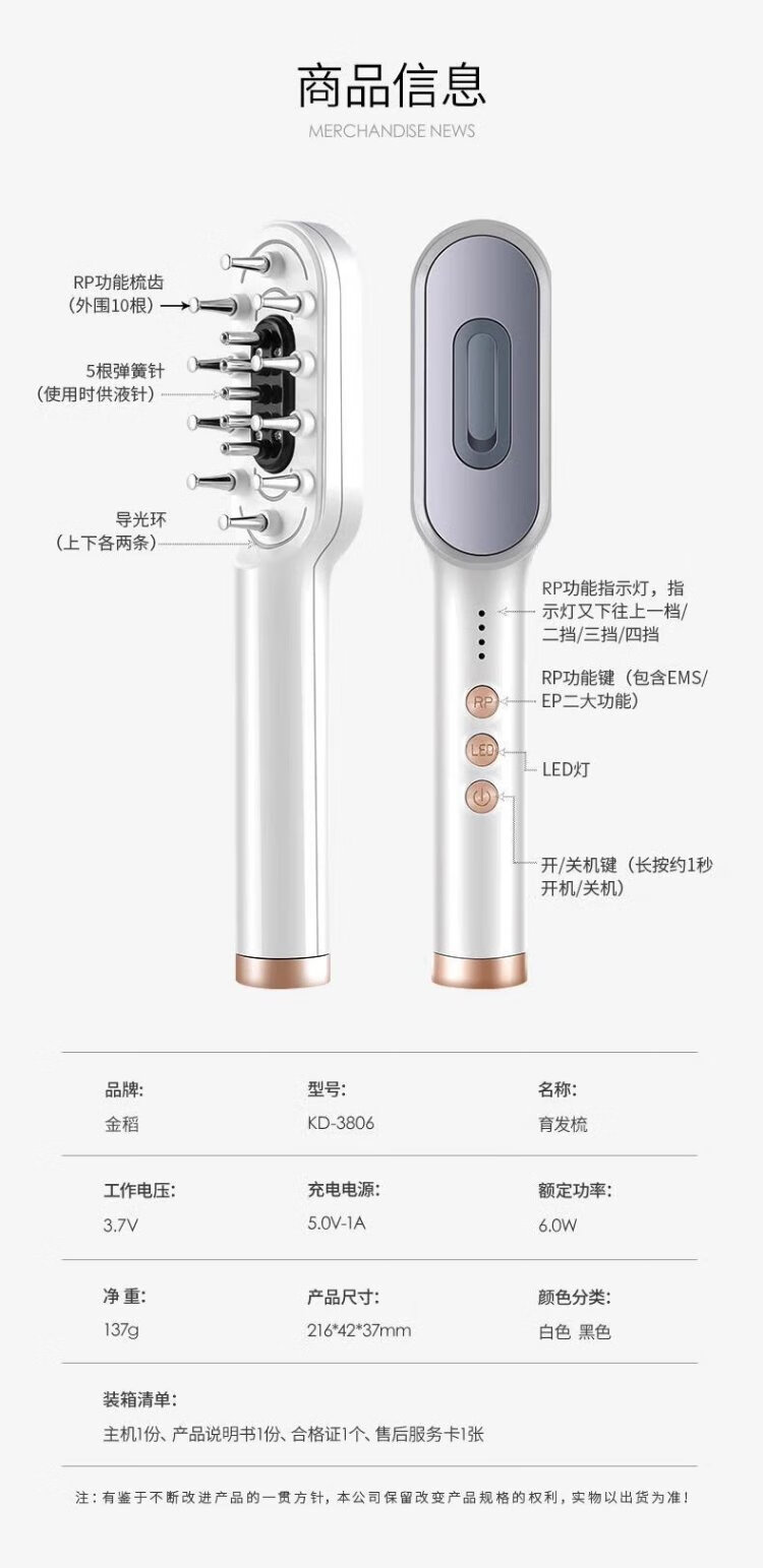 Golden Rice Minoldil Scalp Applicator Hair Health Comb Hair Growth Liquid Essential Oil Essence Introduction Comb Red Light Massager Care Instrument Electric Massage Medicine Guide Comb to Prevent Hair Loss and Increase Hair Haoyue White Red Light + Microcurrent + EP + Push Medicine + Hair Growth Liquid