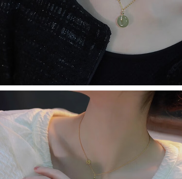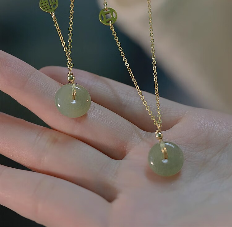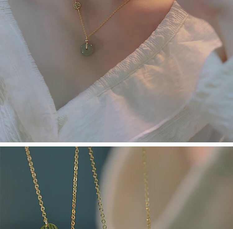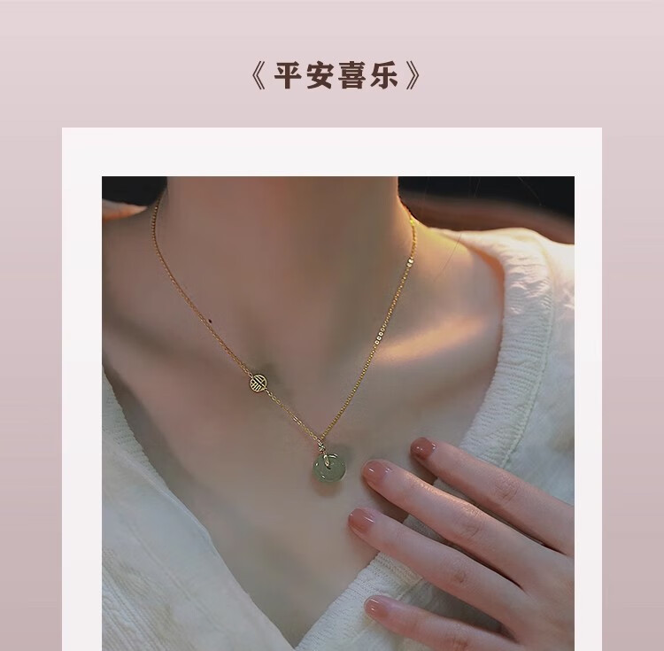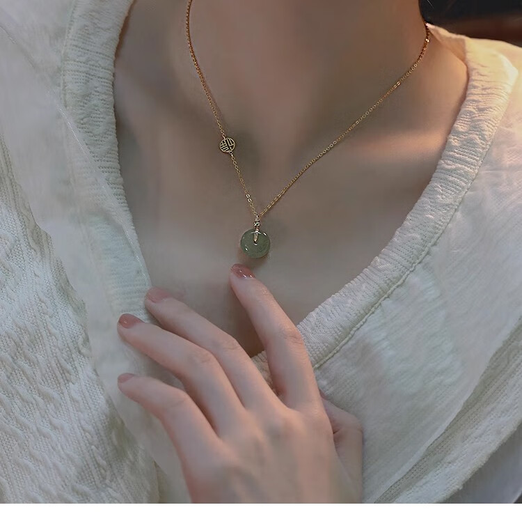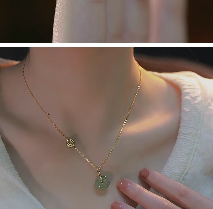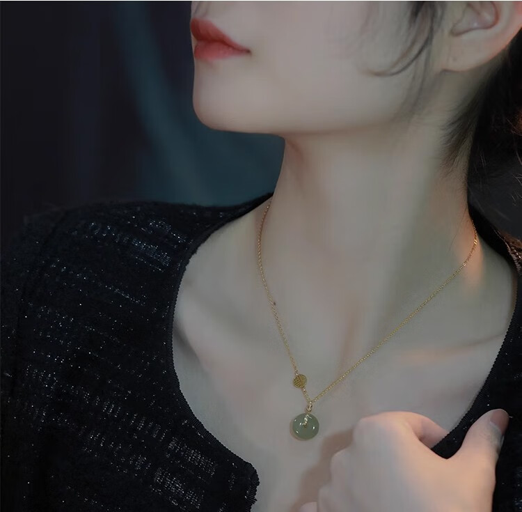 Qi Xiaomi Ping An Buckle Necklace Women's Imitation Hotan Jade Pendant Light Luxury and Practical Valentine's Day 520 Birthday Gift for Girlfriend Butterfly Gift Box