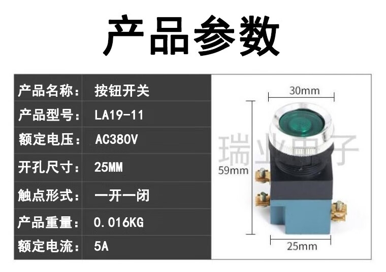 LA19 machine tool CNC power supply start self-reset button circular inching bending machine switch 5A380V hole 25MM green 5 pieces