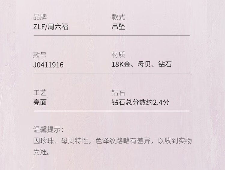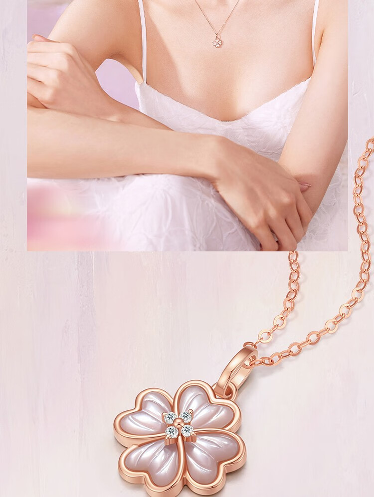 Saturday Fortune (ZLF) 18K gold diamond pendant female four-leaf clover petal mother-of-pearl pendant necklace miss series pendant (chain not included)