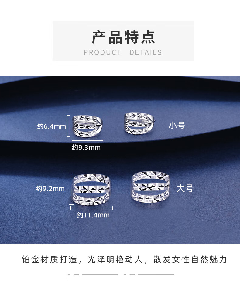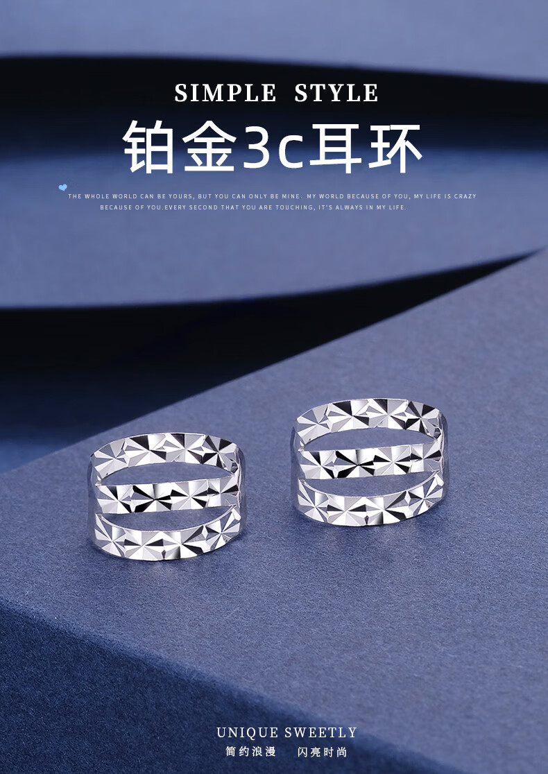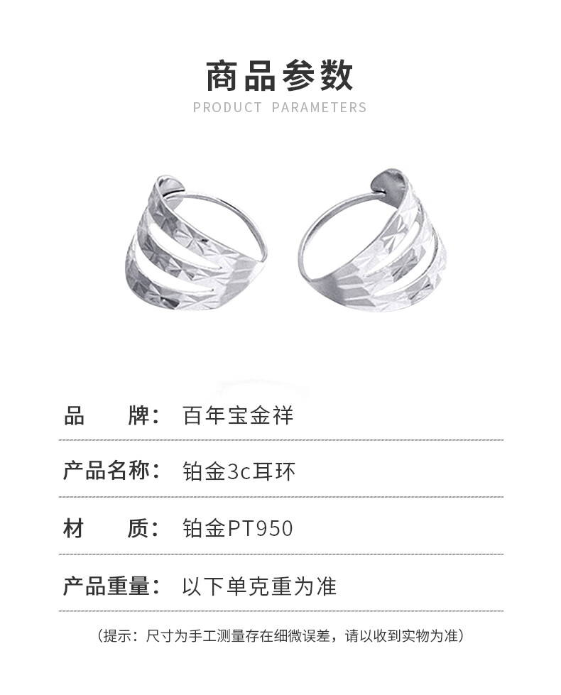 Centenary Baojinxiang Platinum PT950 Earrings Earrings Platinum Ear Hooks Platinum Ear Studs Women's Earrings Female Model About 1.1-1.3 Grams Small Earrings Pair