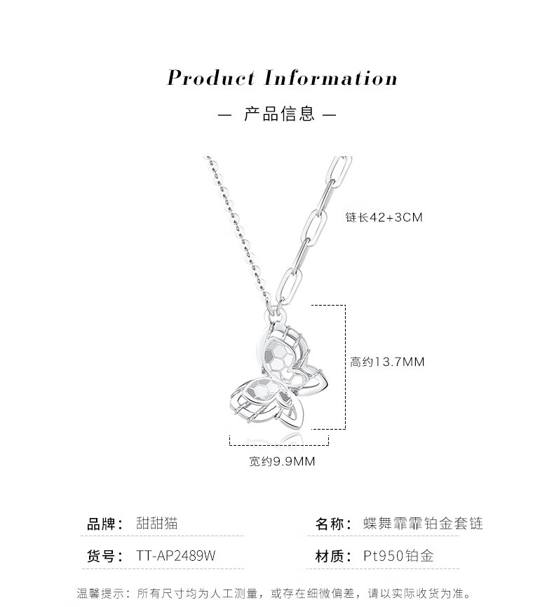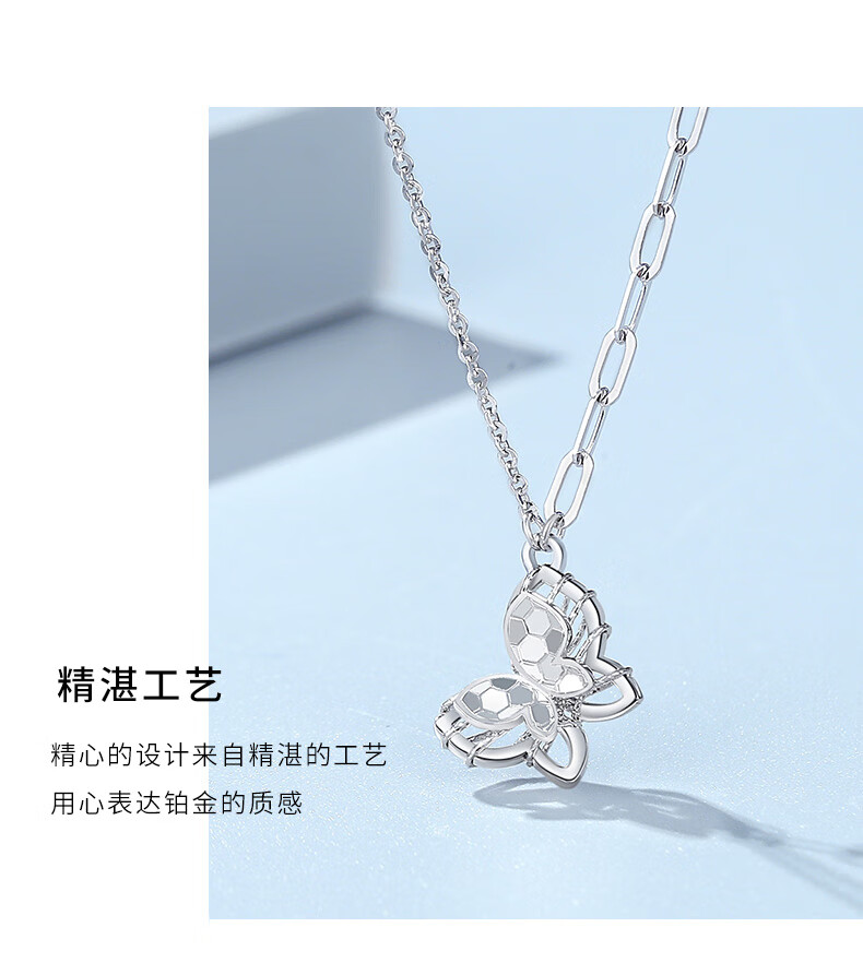 TTMIX Platinum PT950 Necklace for Women Butterfly Pendant Platinum Clavicle Chain Set for Girlfriend 3.8-4.0g