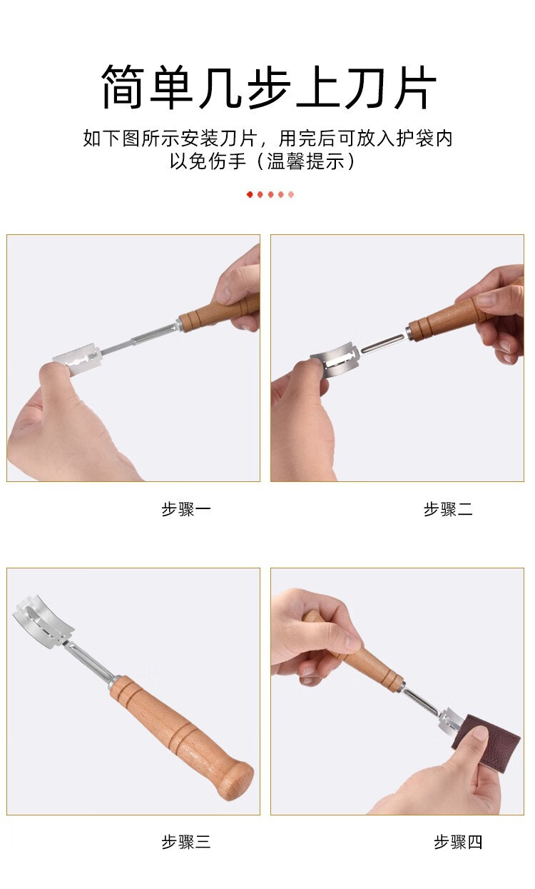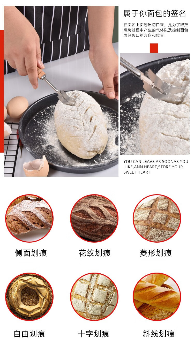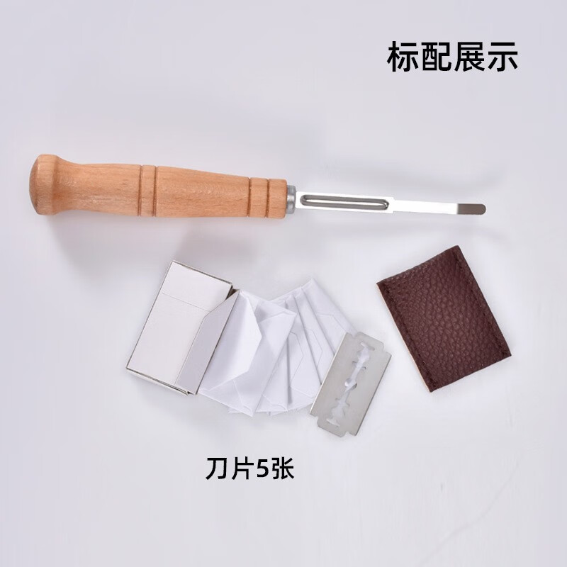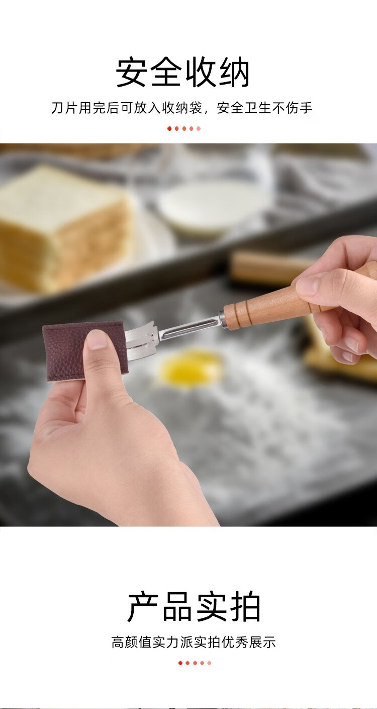 Cangtian Oubao baguette cutting knife trimming knife log handle dough scraper bread cutter household DIY baking tools log handle with 5 ordinary blades (boxed)
