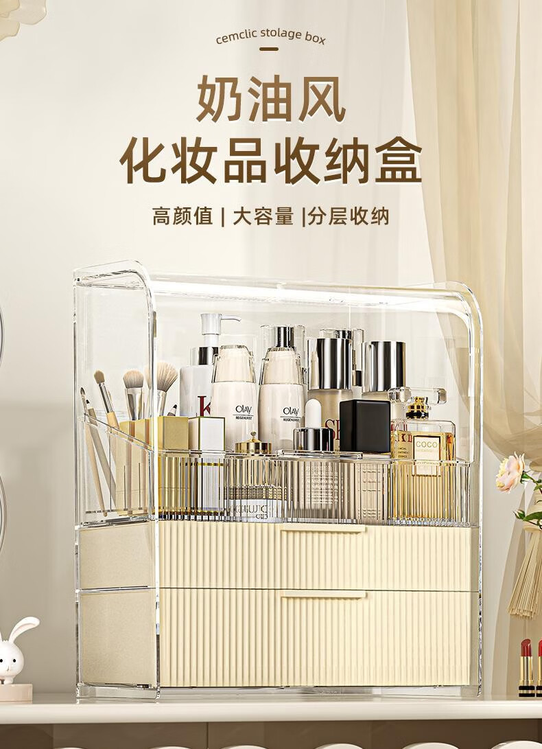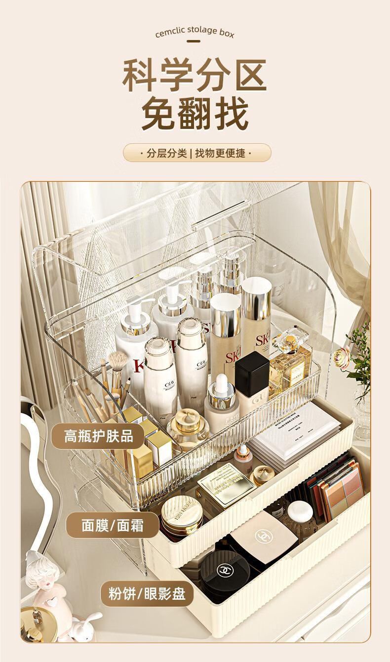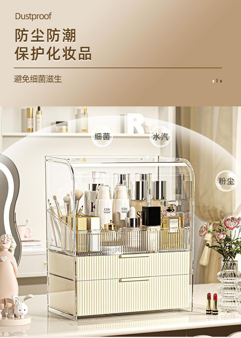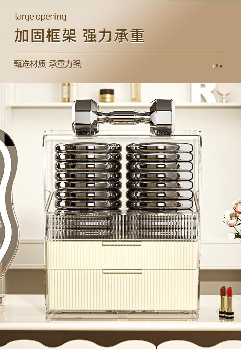 YIMEIHUI Cosmetic Storage Box Light Luxury Dustproof Box Large Capacity Drawer Dressing Table Powder Mask Cosmetic Storage Shelf Cream White - Three Layers With Dustproof Cover + Lipstick Box