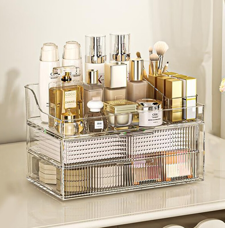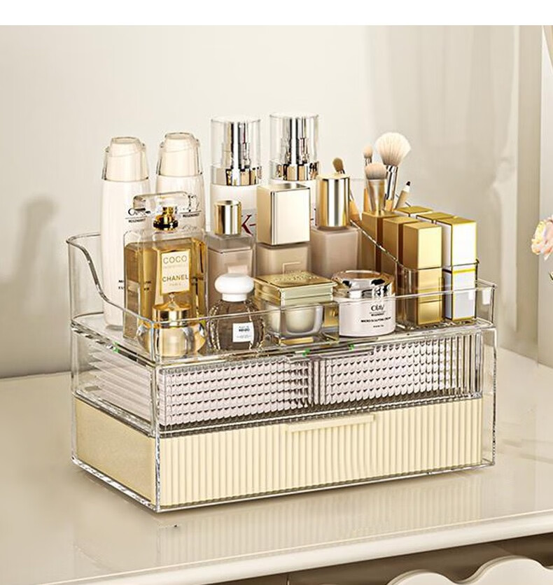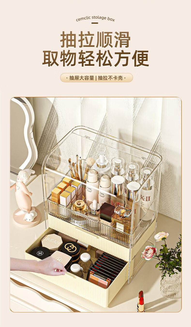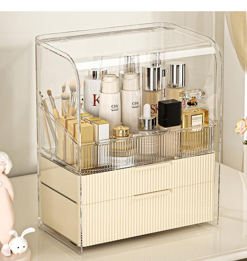 YIMEIHUI Cosmetic Storage Box Light Luxury Dustproof Box Large Capacity Drawer Dressing Table Powder Mask Cosmetic Storage Shelf Cream White - Three Layers With Dustproof Cover + Lipstick Box
