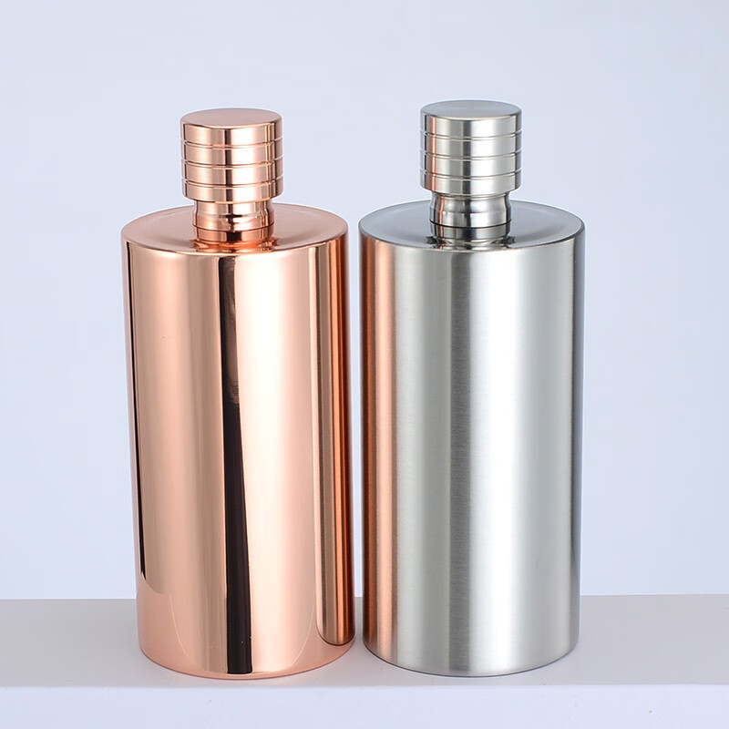 Zhushengmo (ZHUSHENGMO) stainless steel 304 wine bottle 1 Jin Jin equals 0.5 kg 2 Jin Jin equals 0.5 kg Thickened cylindrical kettle portable Moutai bottle creative round liquor bottle 2 Jin Jin equals 0.5 kg Bright cylindrical style