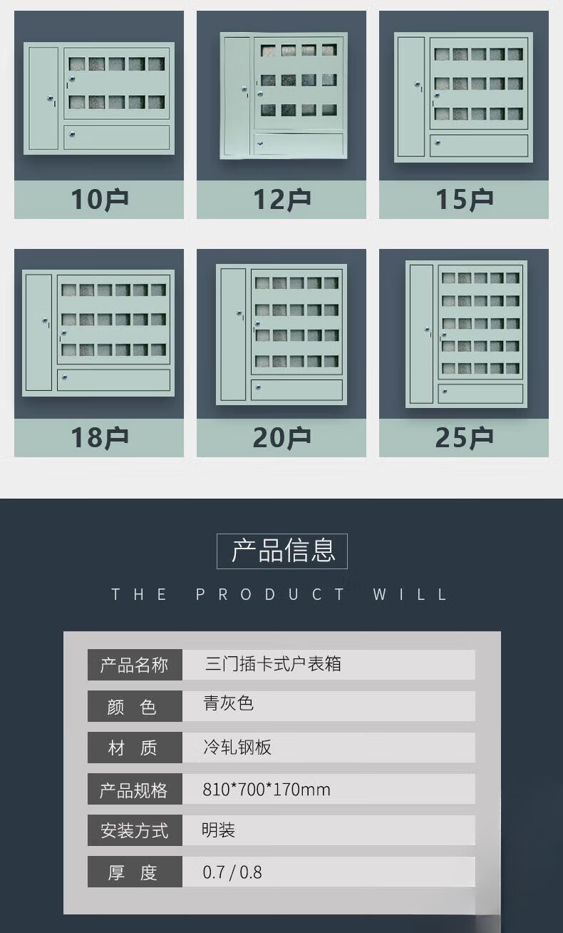 Indoor and outdoor electric meter box for 2 households, 4 meters for 6 households, 8 households, 10 meters, 12 digits for 15 households, stainless steel meter box concealed and exposed, 8 households 810*700*170