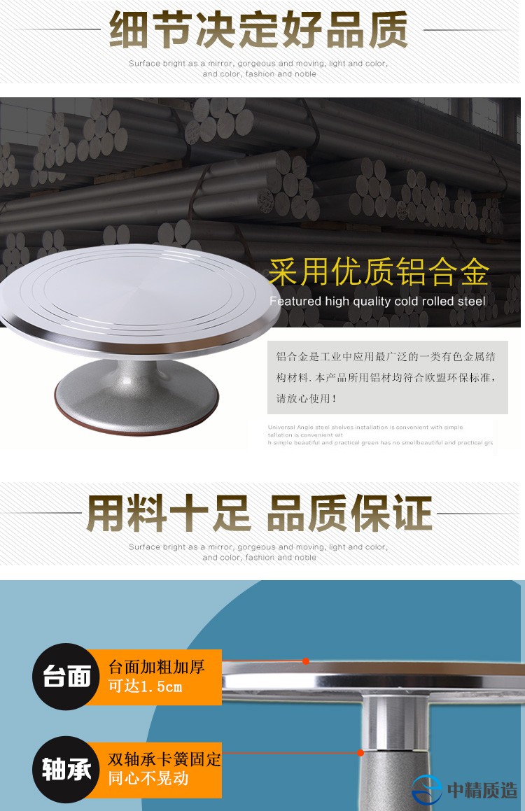 Mengwan Decoration Turntable Aluminum Alloy Turntable Decoration Table Household Rotary Table Birthday Rotary Rack 8-inch 12-inch Support Table 12-inch Aluminum Alloy Turntable + 8-inch Spatula