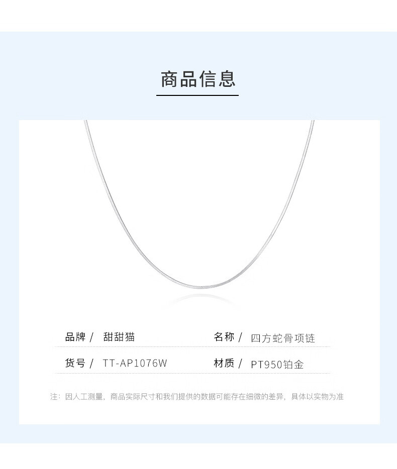 TTMIX platinum square snake bone necklace for women PT950 platinum chain light luxury niche clavicle neck necklace customized deposit change buckle, please contact customer service for details