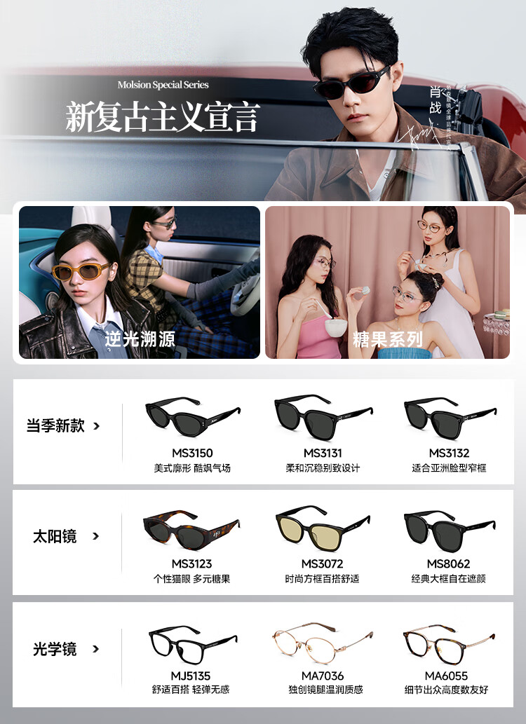 MOLSION sunglasses Zhao Liying's same style polarized men's and women's same style high-end MS3072 C10 cool black Liying's same style not suitable for prescription