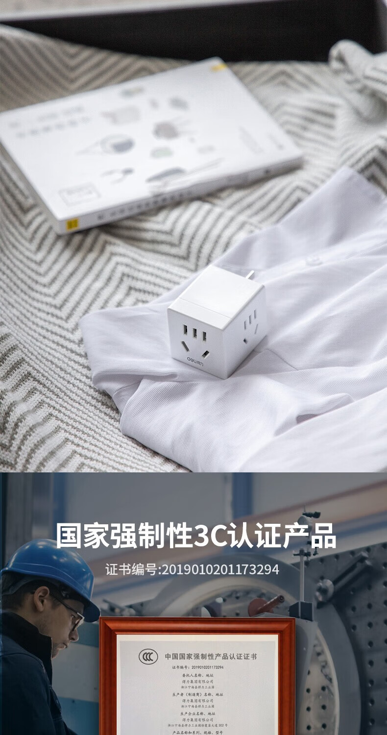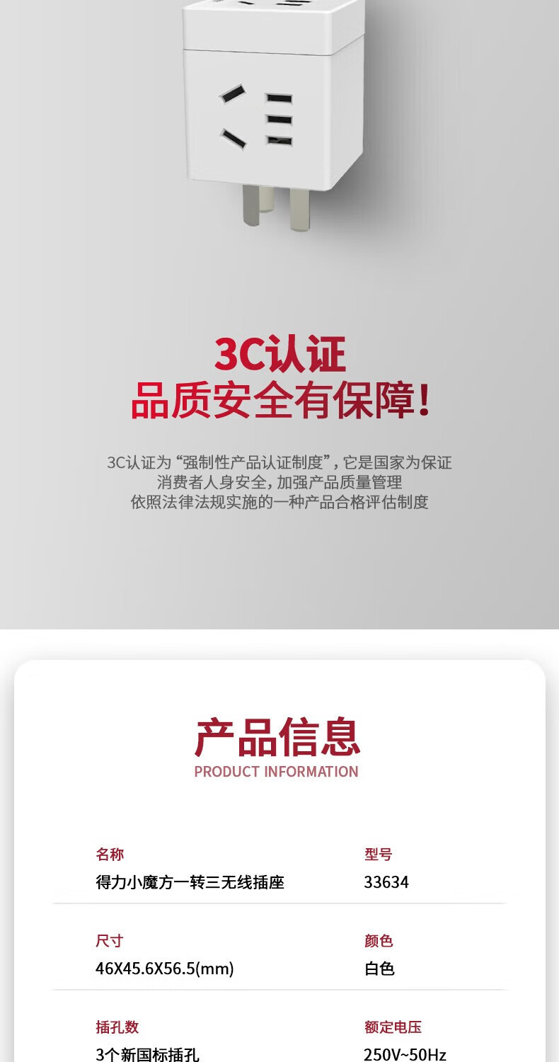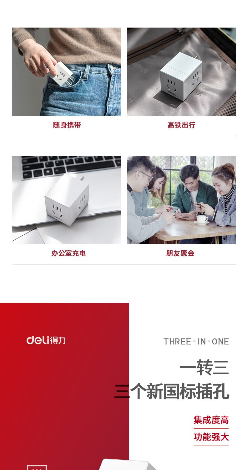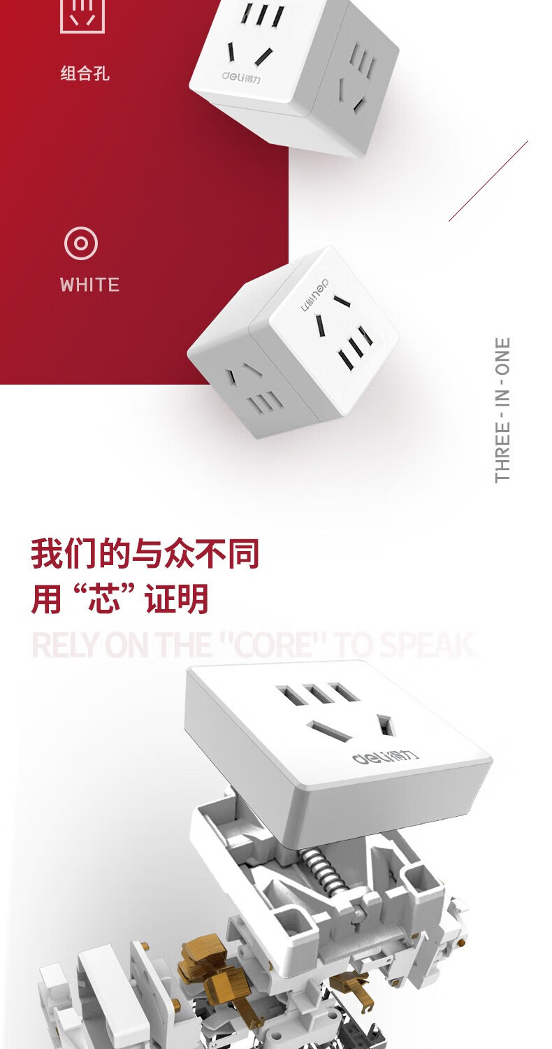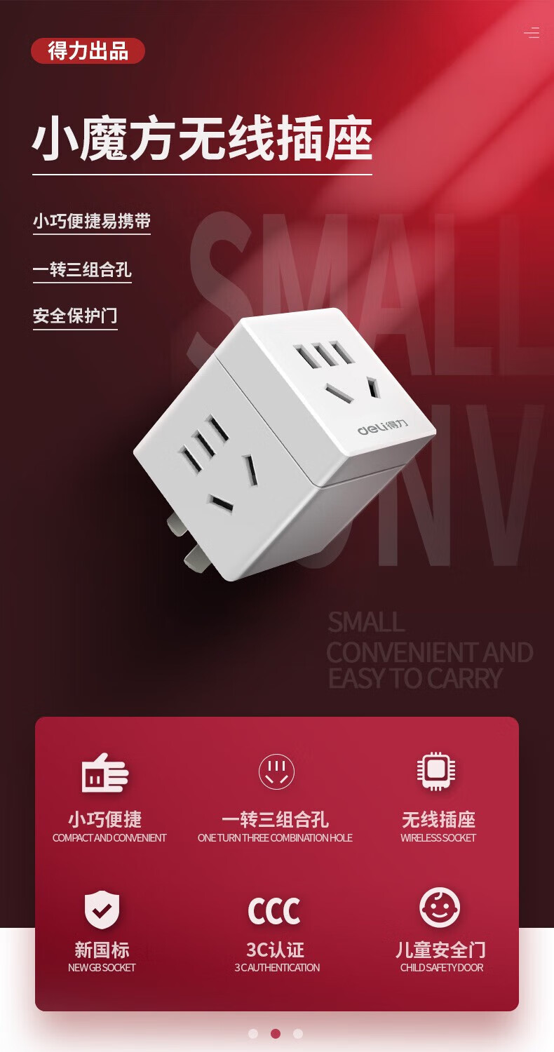Deli Rubik's Cube Socket USB Socket Multi-function Plug Strip Plug Converter Wireless Plug Strip Dark Gray 1 to 3 Combination Hole 33634