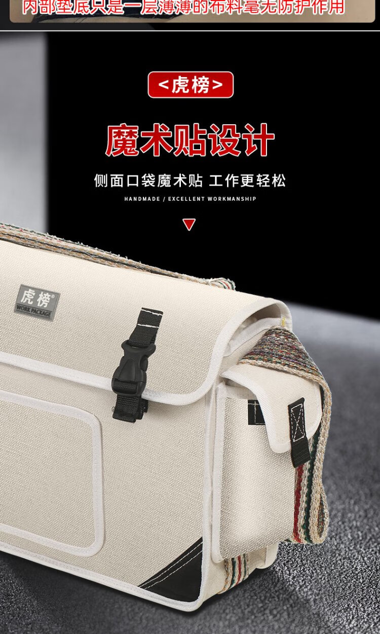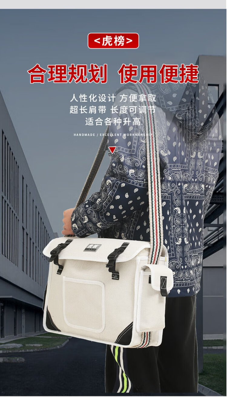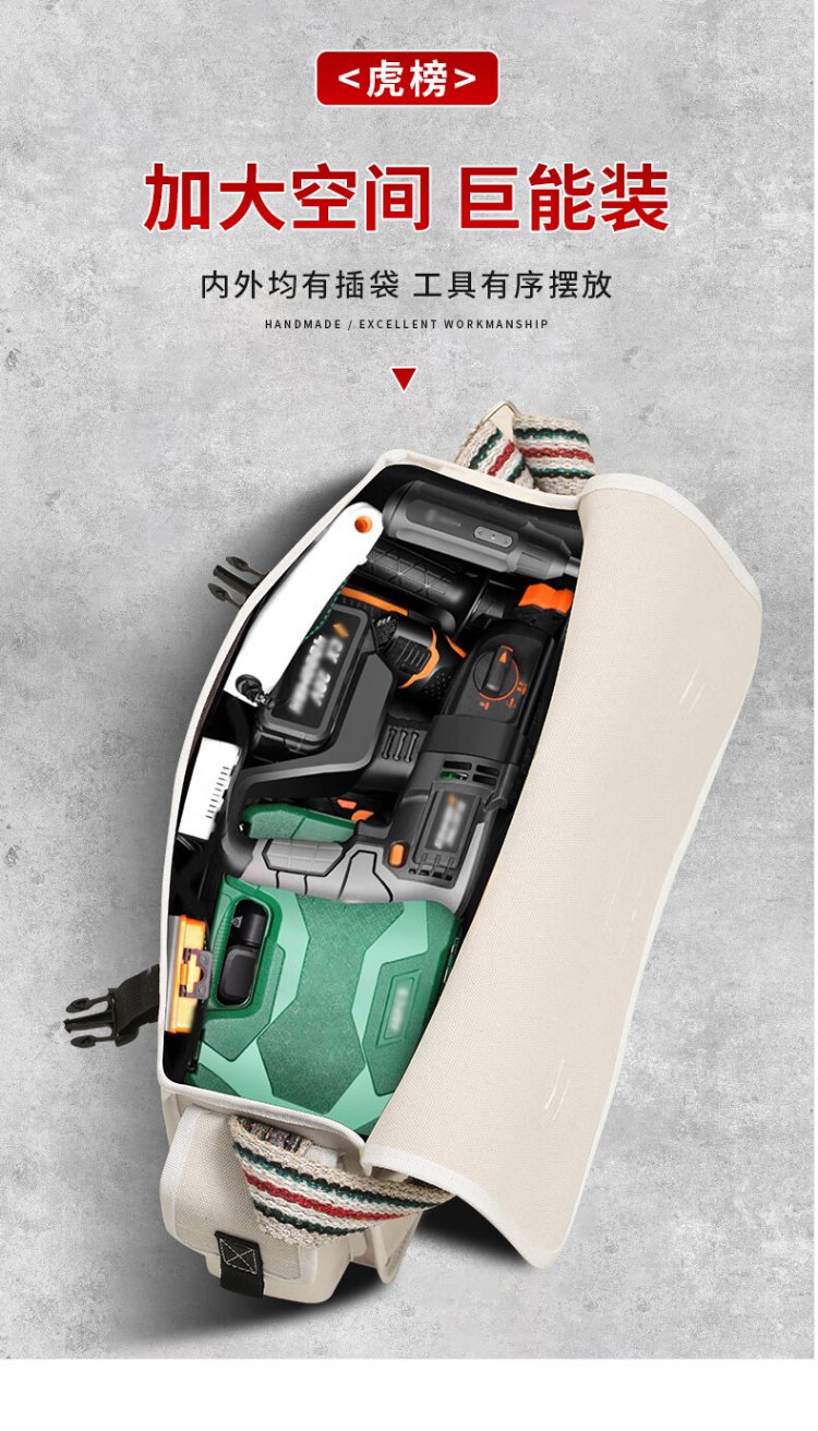 Tiger list tool bag is sturdy and durable, repair and installation electrician tool bag, multi-functional hardware tool shoulder bag, canvas bag HB03 extra large size, length 50, width 20, height 35