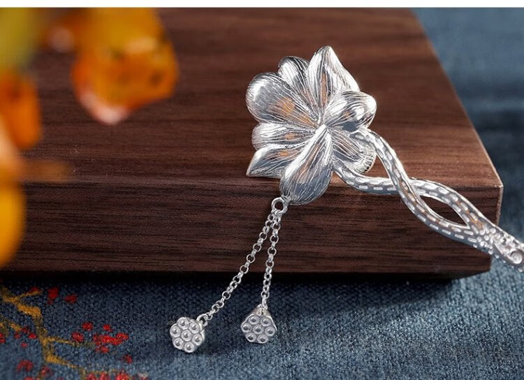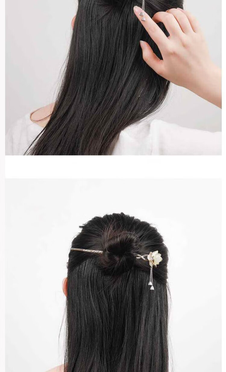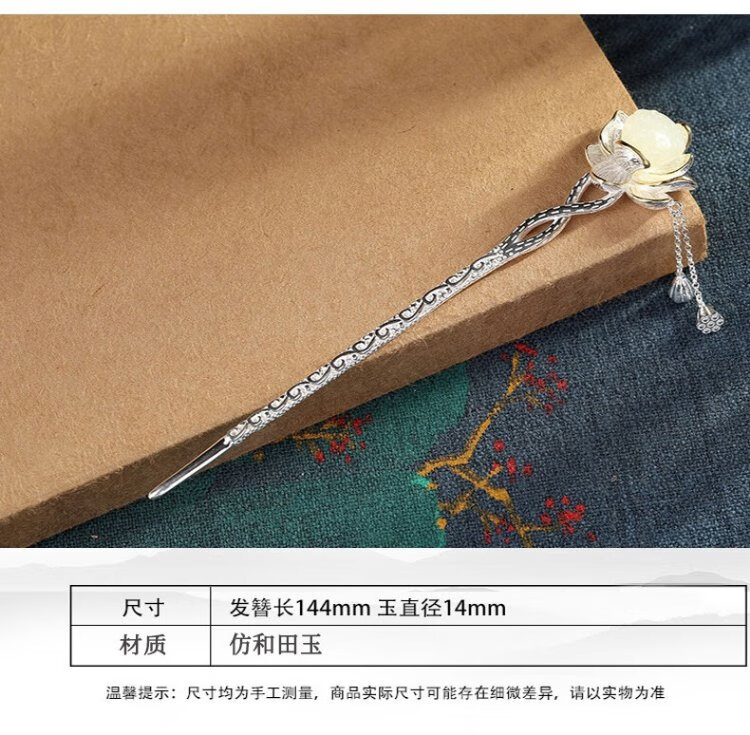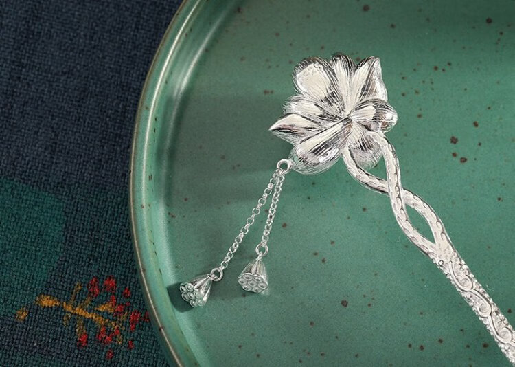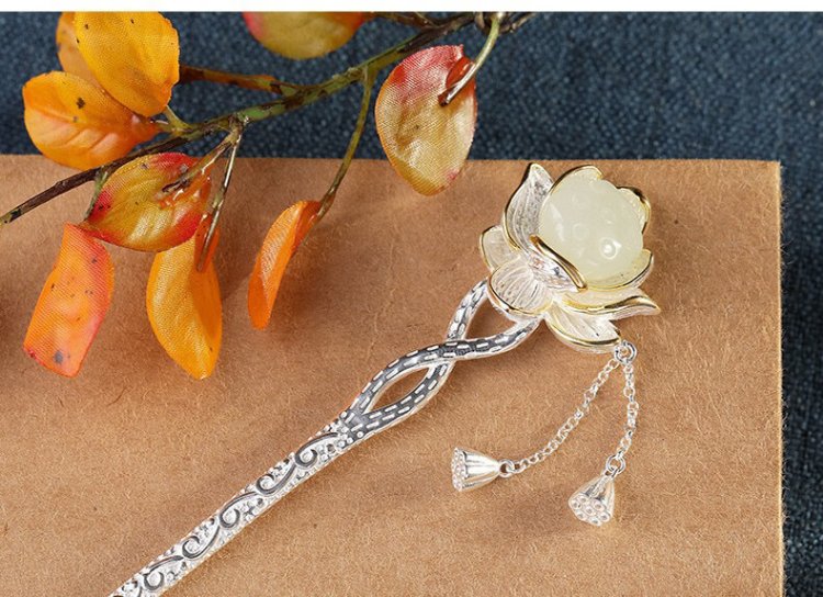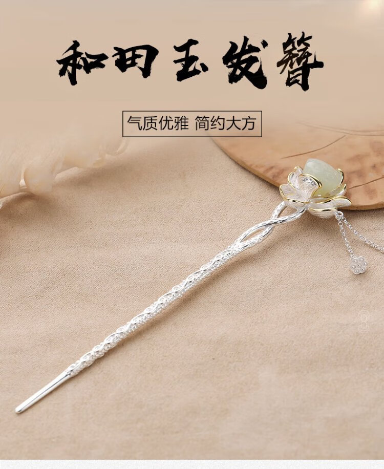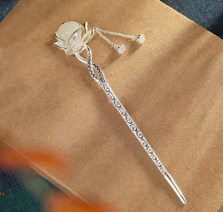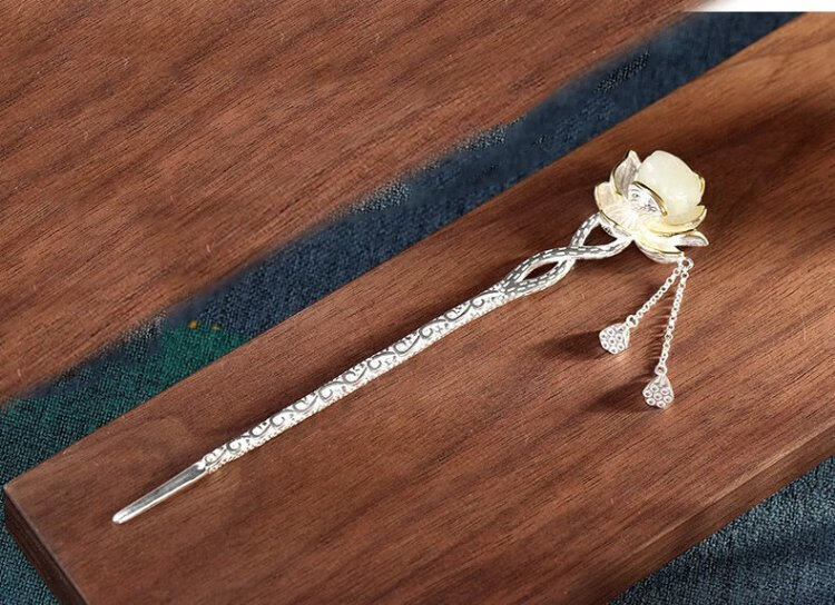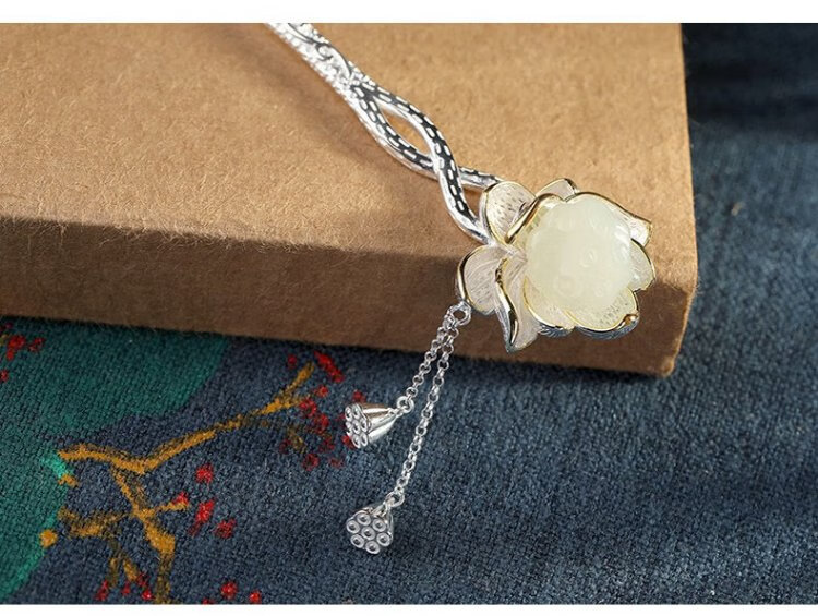 Silver Jade Lotus Hairpin Women's Tassel Silver Hairpin Cheongsam Modern Ancient Style Hanfu Step Shake Jade Hairpin Fashion Hair Accessories Lotus Hairpin