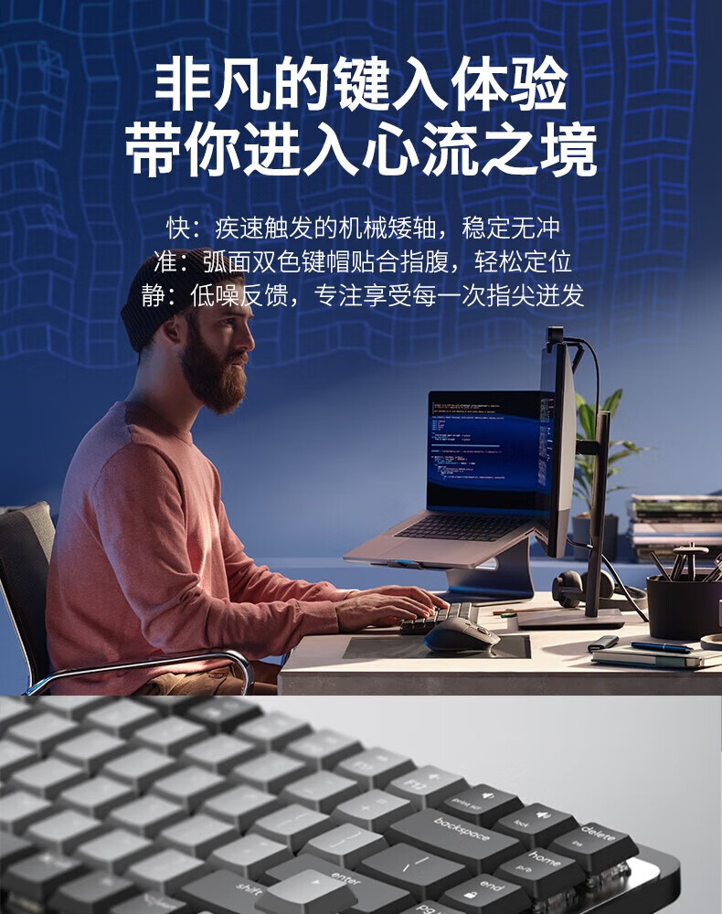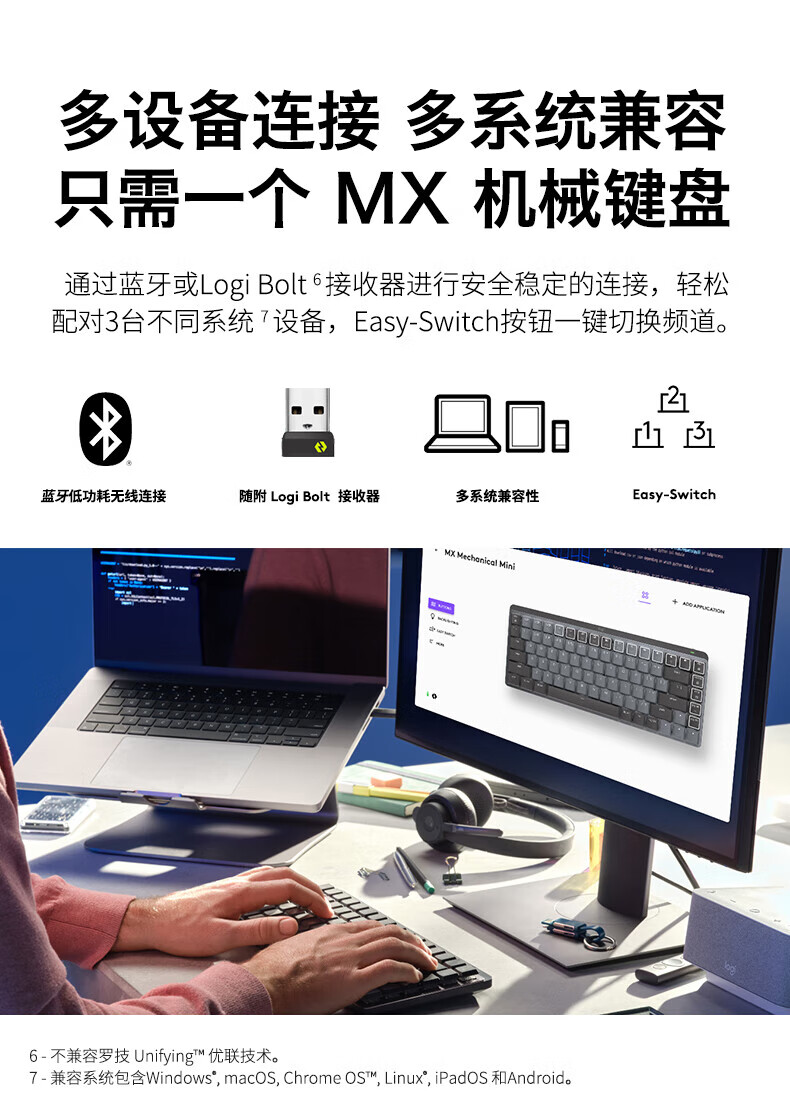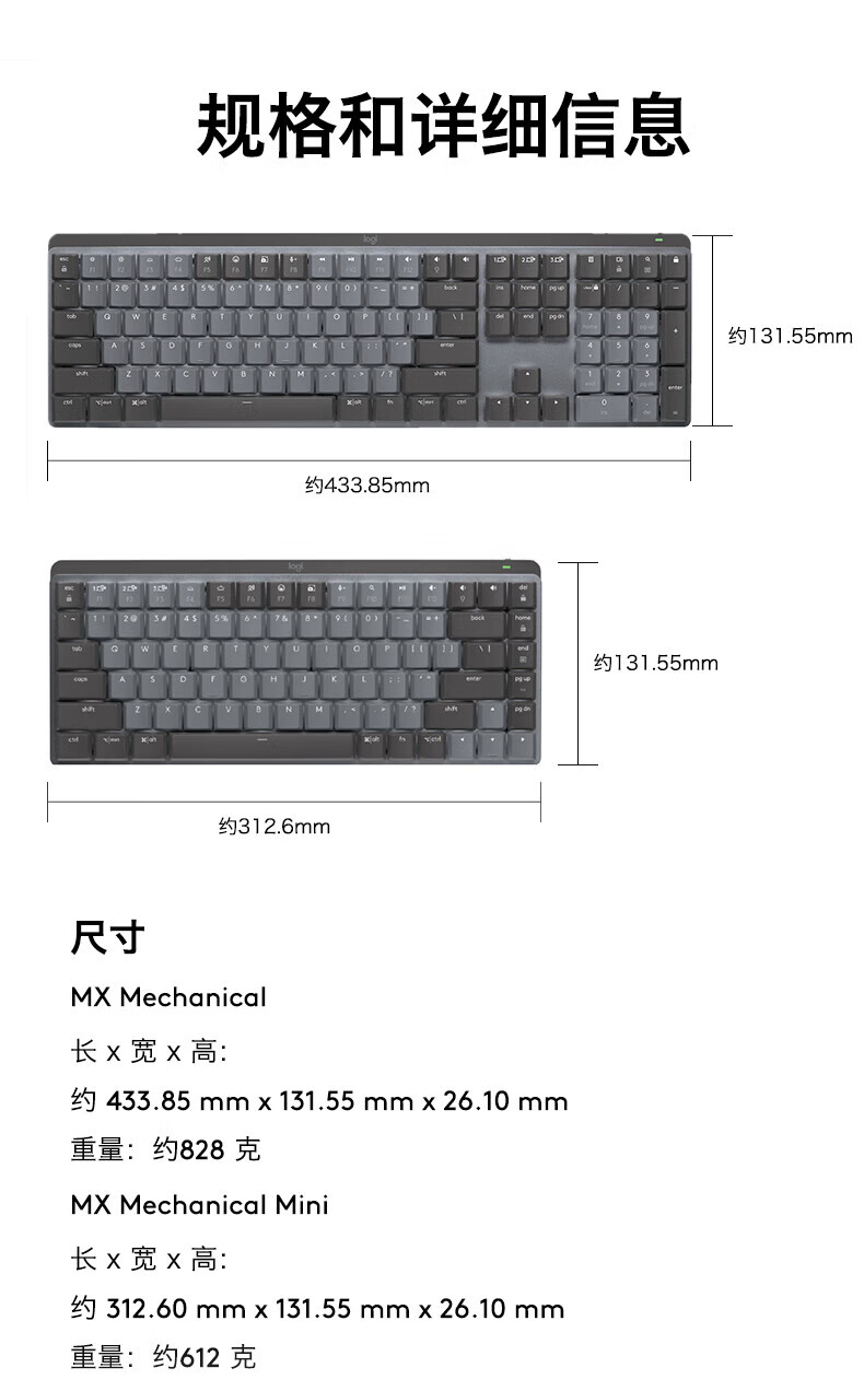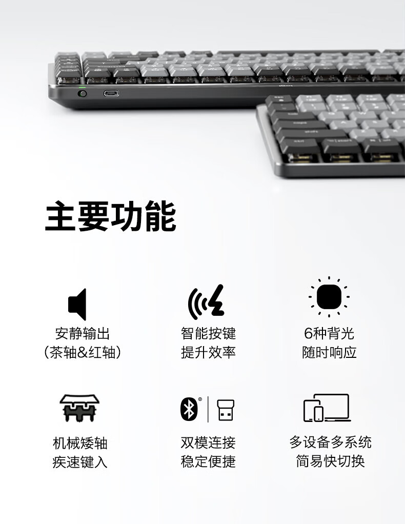 Logitech Logitech Master Series MX Mechanical/mini wireless Bluetooth mechanical keyboard notebook desktop computer office game mx mini MAC version - black single light blue axis