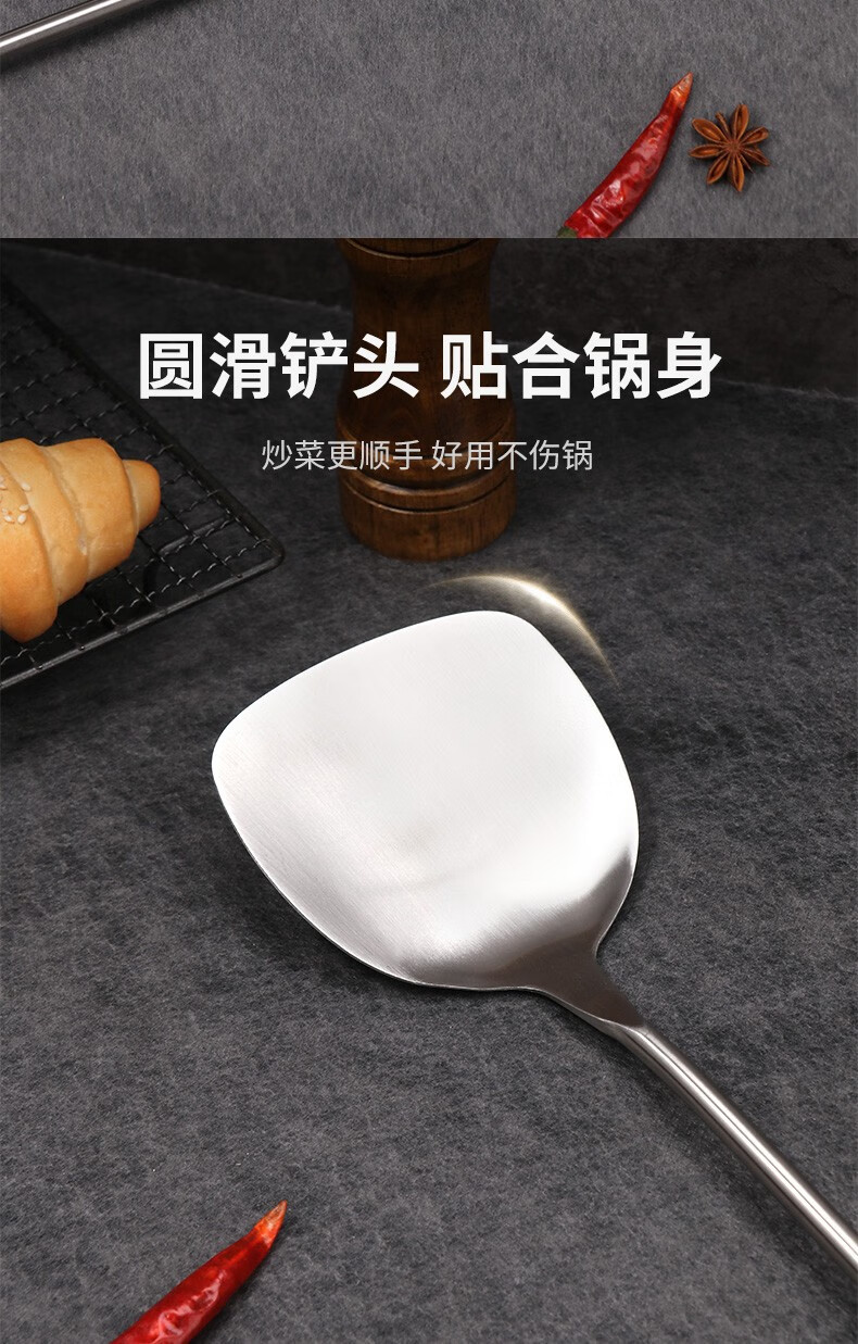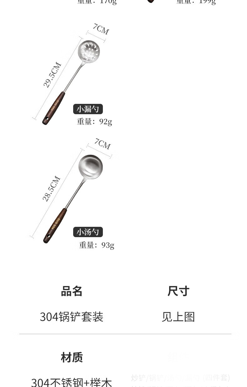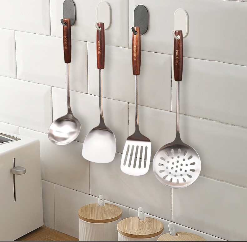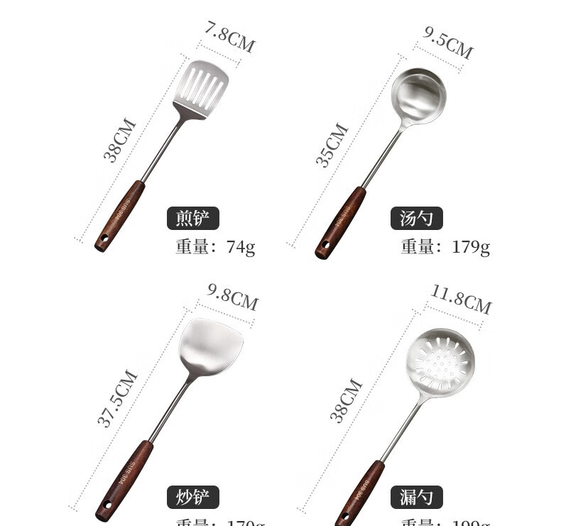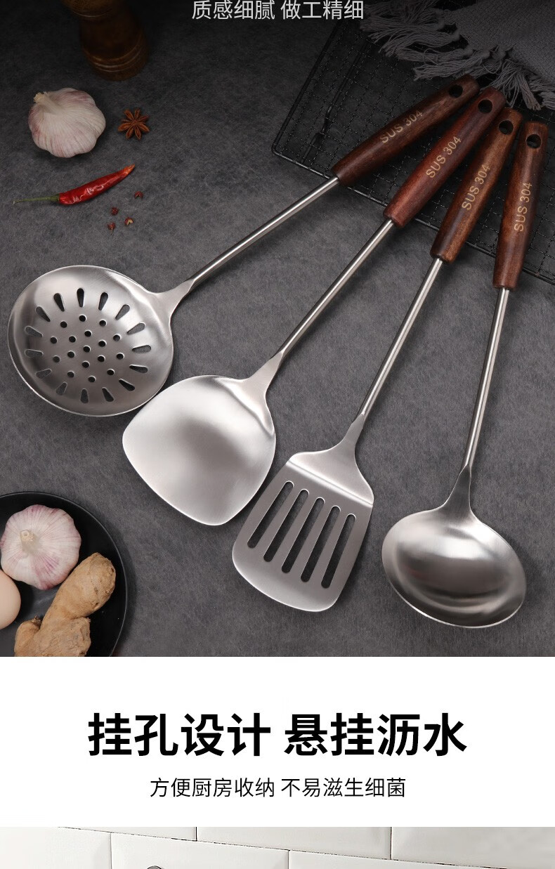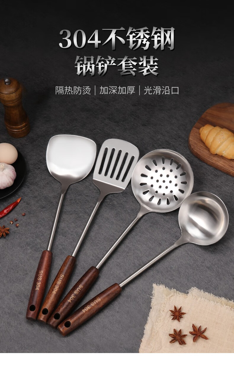 Baijie 304 stainless steel spatula solid wood handle household spatula set soup spoon colander kitchen frying spatula colander cooking spatula 304 stainless steel spatula #hot style#