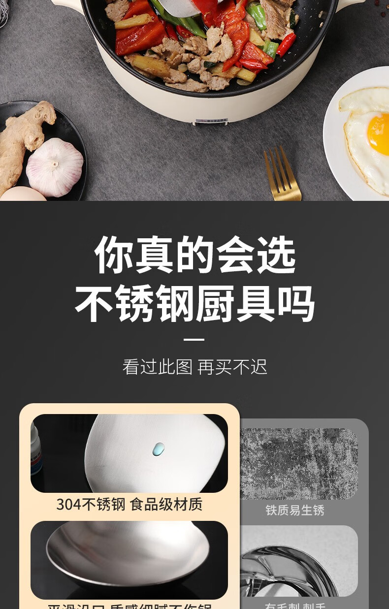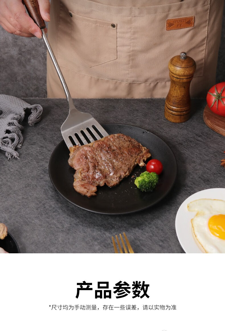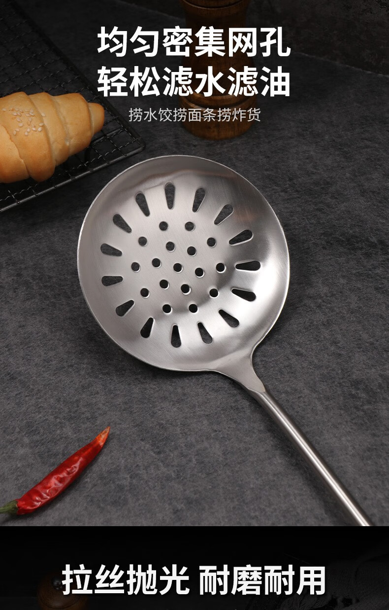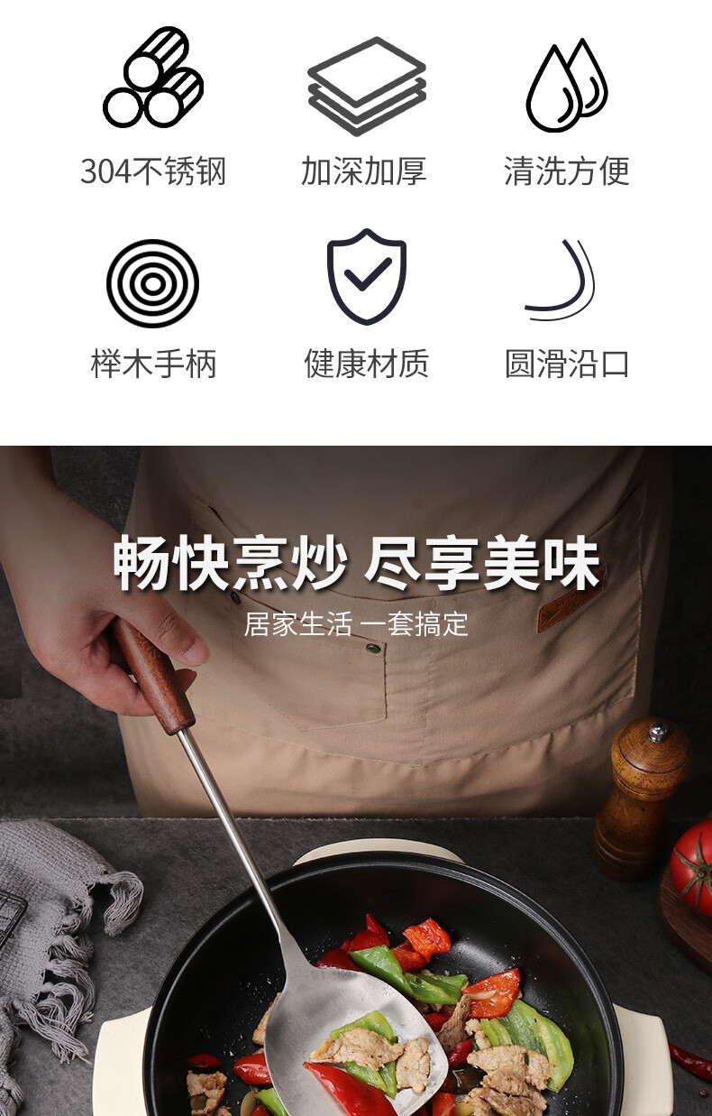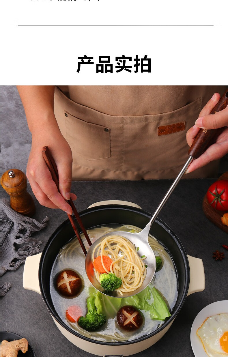Baijie 304 stainless steel spatula solid wood handle household spatula set soup spoon colander kitchen frying spatula colander cooking spatula 304 stainless steel spatula #hot style#
