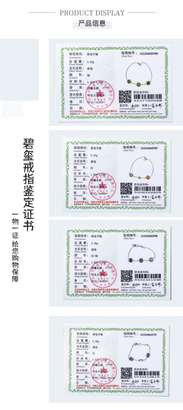 Yuanwen Yuan Tourmaline Gemstone Bracelet 18K Gold Bracelet Women's Birthday Holiday Gift for Girlfriend with Certificate K Gold Inlaid Electric Green Tourmaline Bracelet