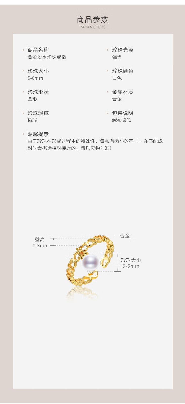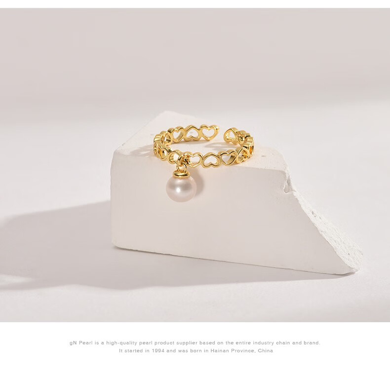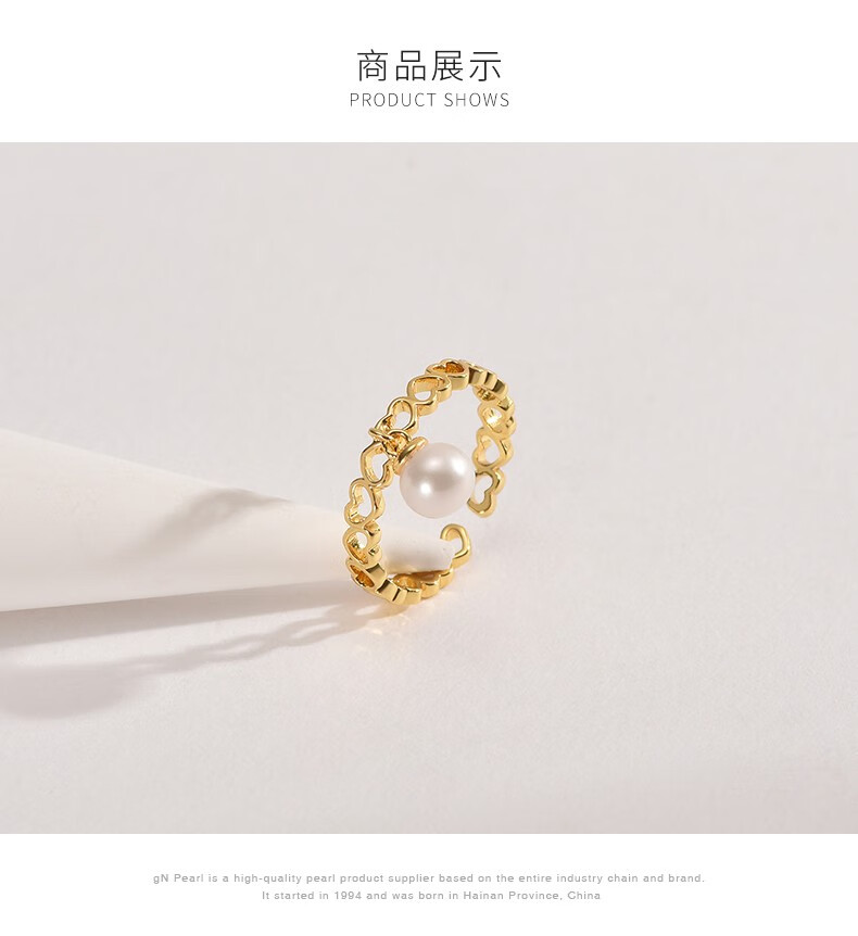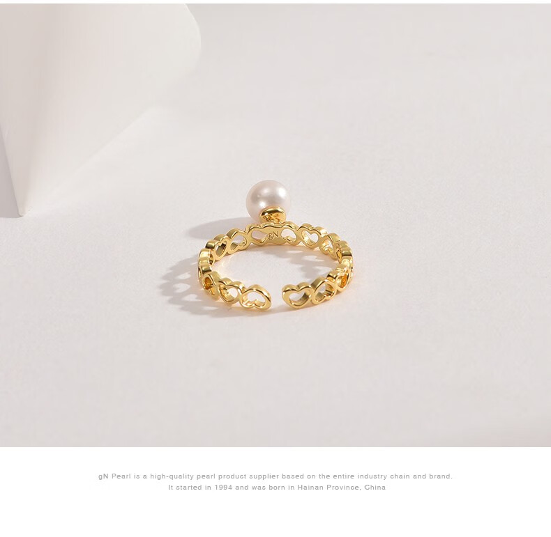 Jingrun Pearl Ring Huaiyan Alloy Freshwater Pearl Ring Round Temperament Ring Jewelry Birthday Gift 5-6mm