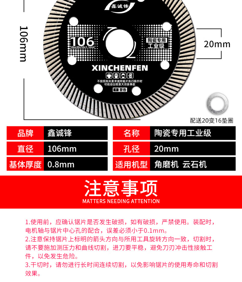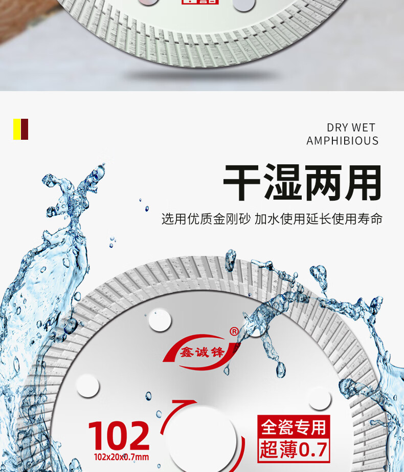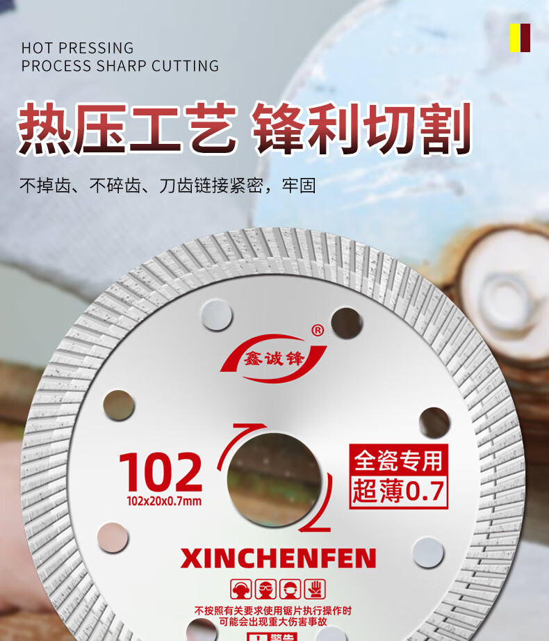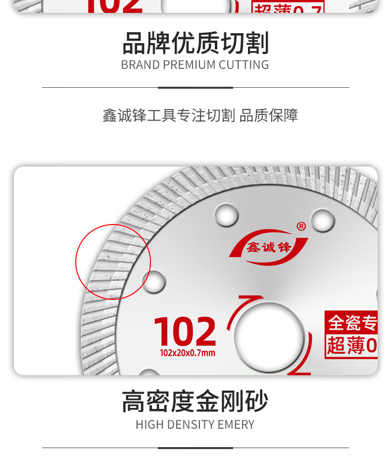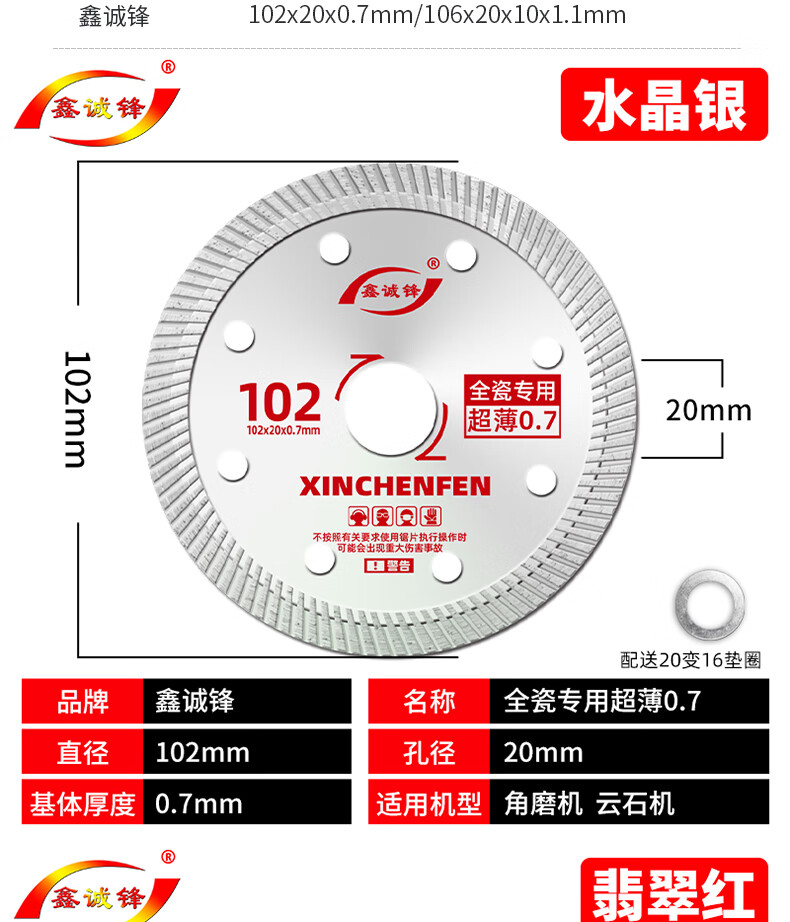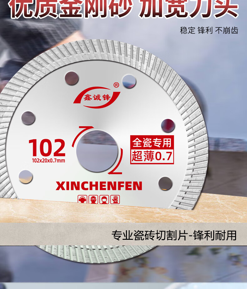 Xinchengfeng 0.7 ceramic tile cutting piece vitrified tile marble microcrystalline stone all-ceramic ultra-thin dry cutting cutting machine diamond blade crystal silver 102 (0.7SPHC international version)