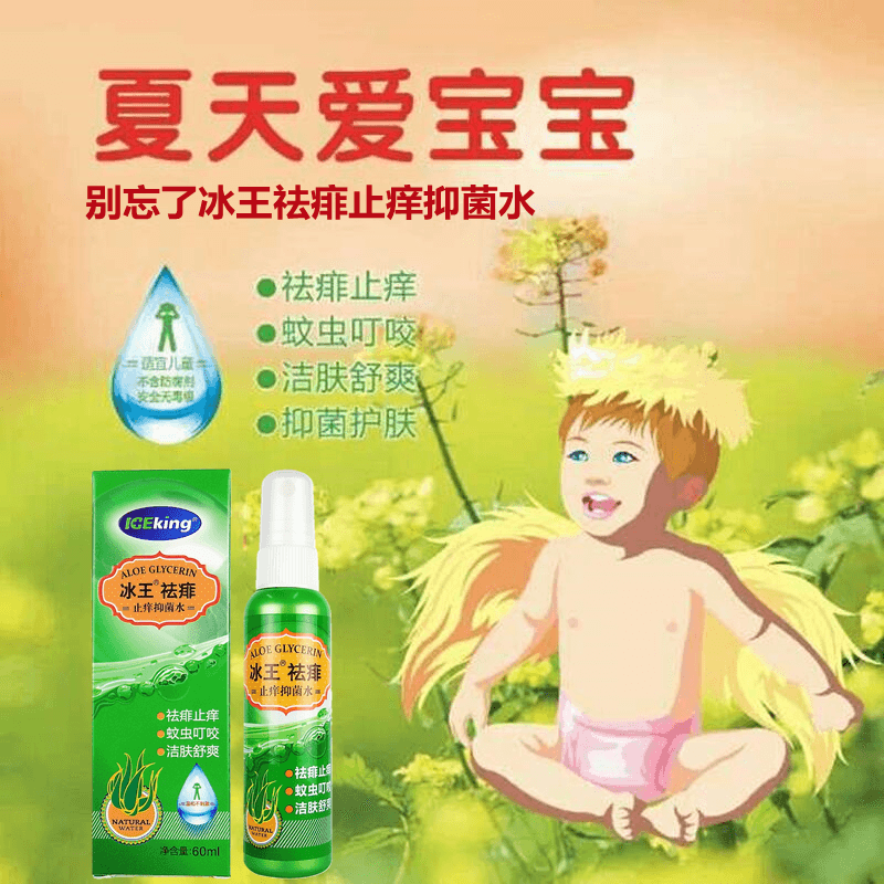 Ice King Prickly Heat, Anti-Itching and Antibacterial Water 60ml Mosquito Bites Soothing Prickly Heat Water, Anti-Itching Moisturizing Aloe Vera Prickly Heat Skin Care Cream Ice King Prickly Heat Treatment Combination 60ml+20g
