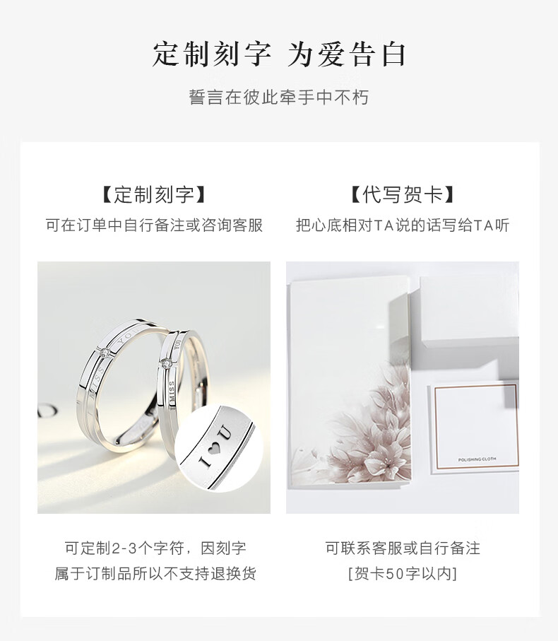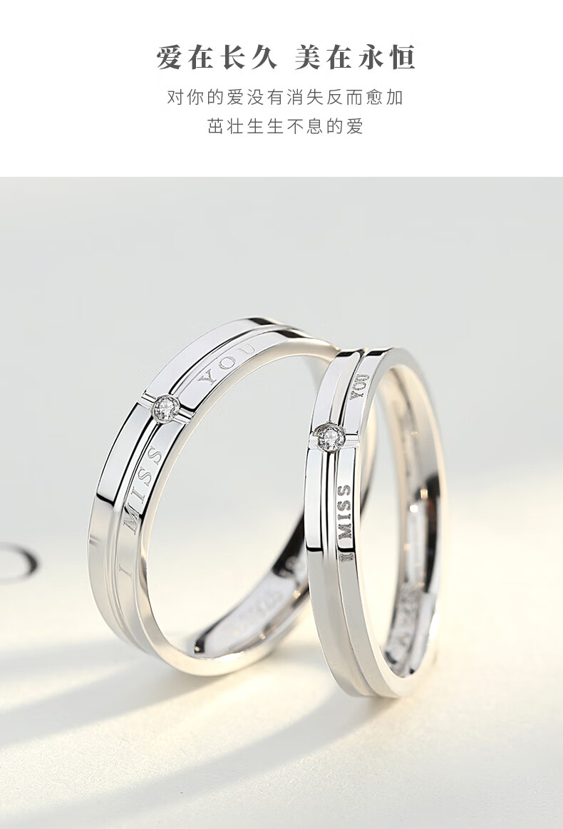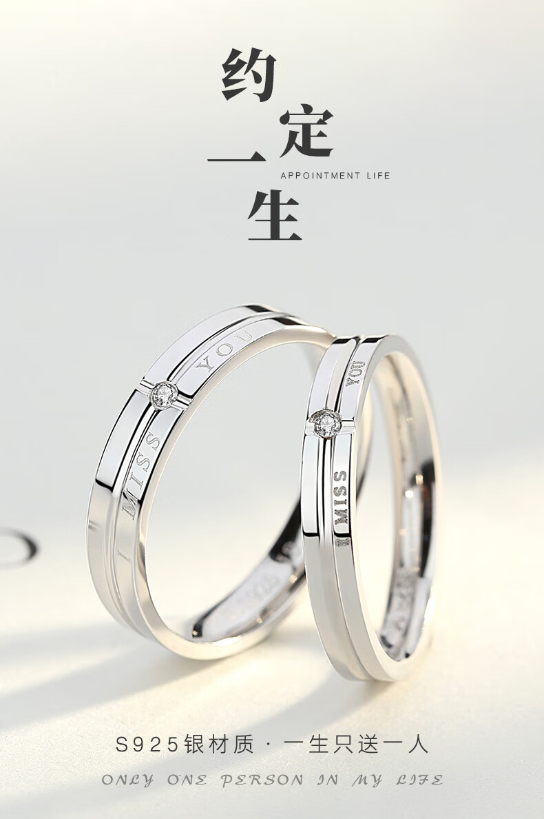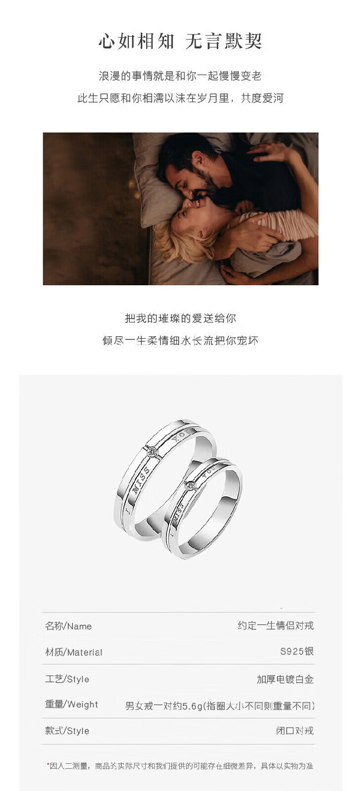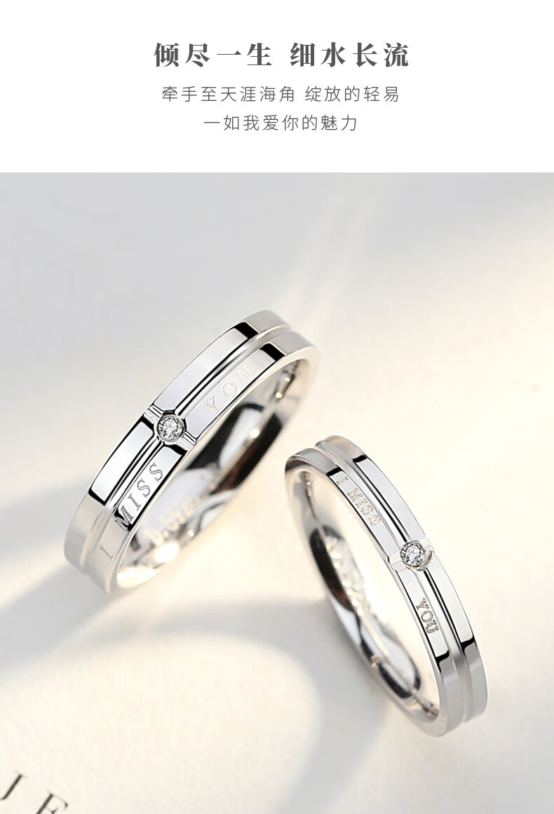 Chow Tai Fook style 925 silver couple rings, a pair of trendy male and female student rings, engagement rings, Valentine's Day life, a pair of oral version couple rings - with certificate