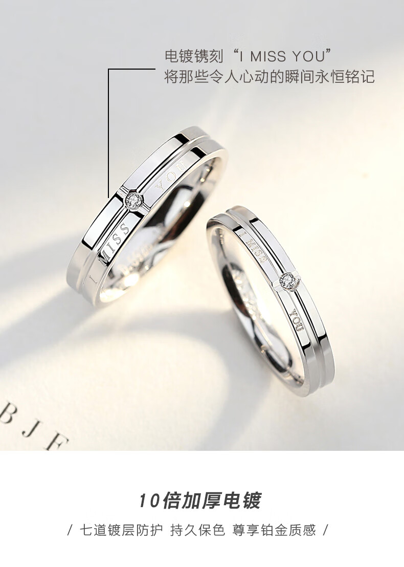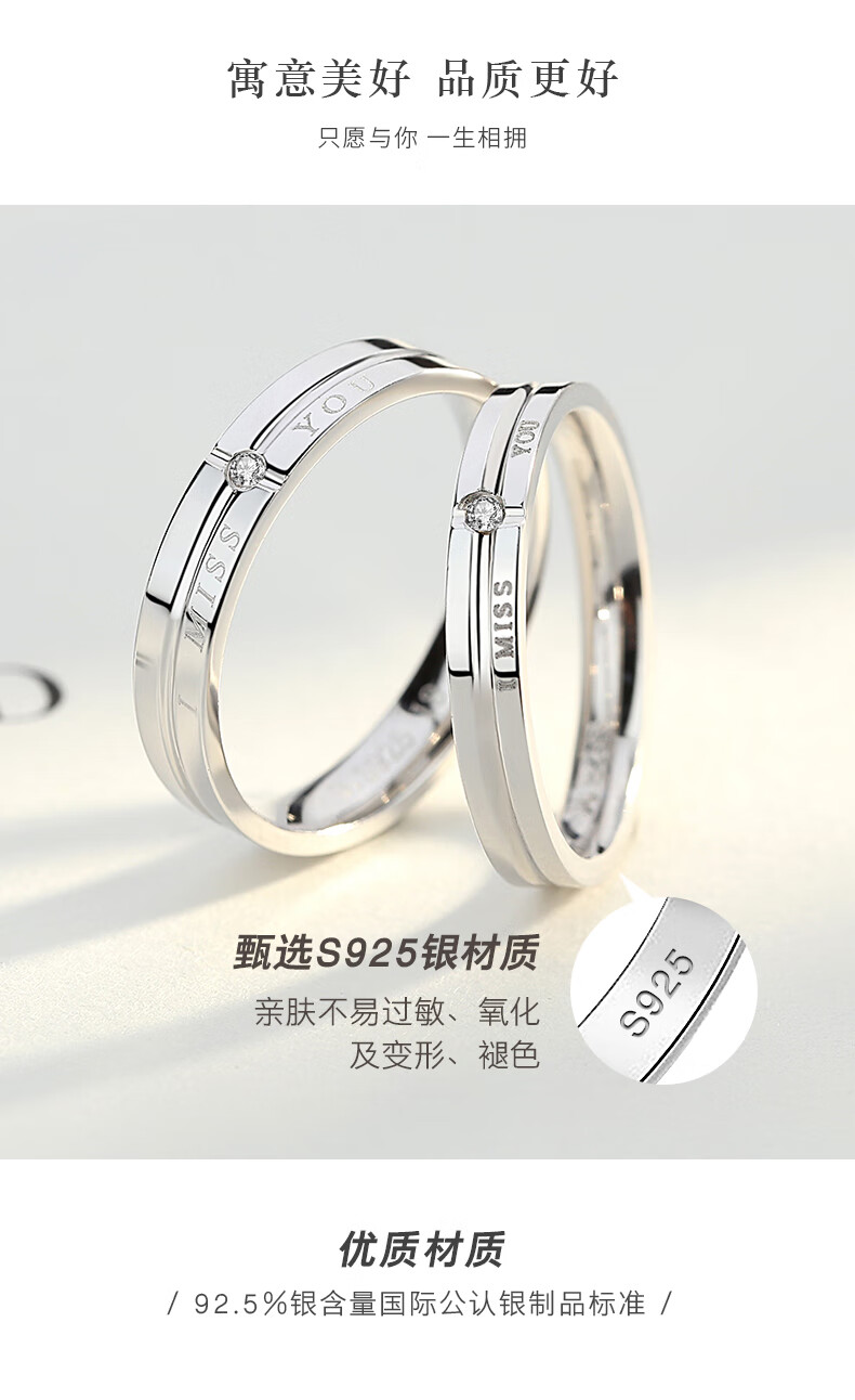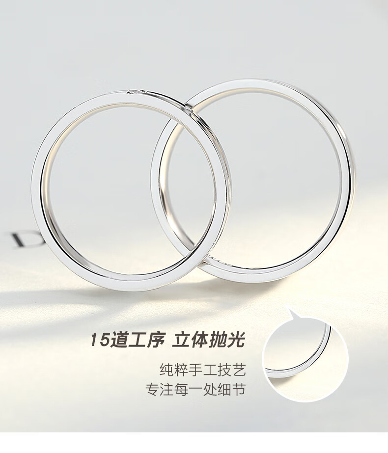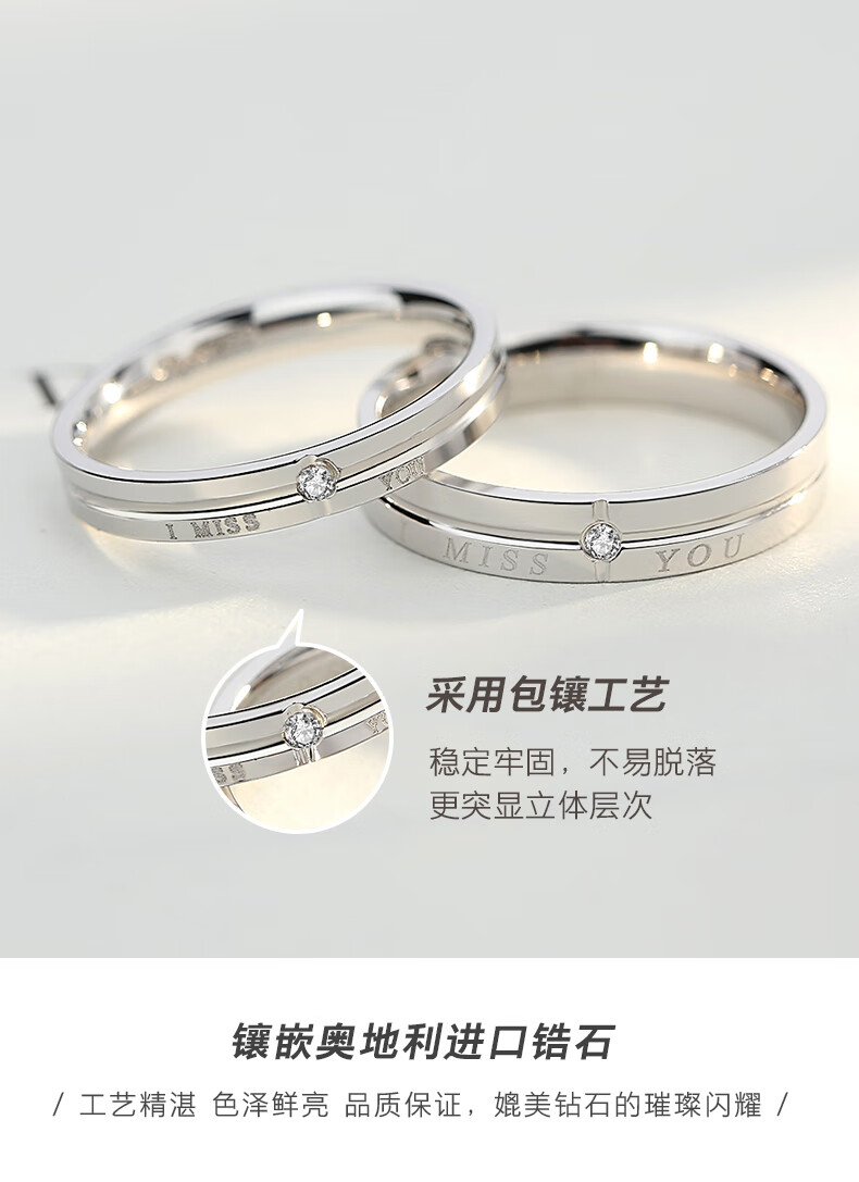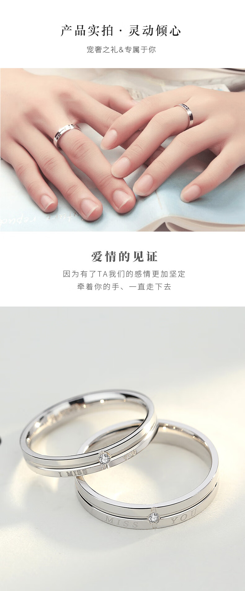 Chow Tai Fook style 925 silver couple rings, a pair of trendy male and female student rings, engagement rings, Valentine's Day life, a pair of oral version couple rings - with certificate